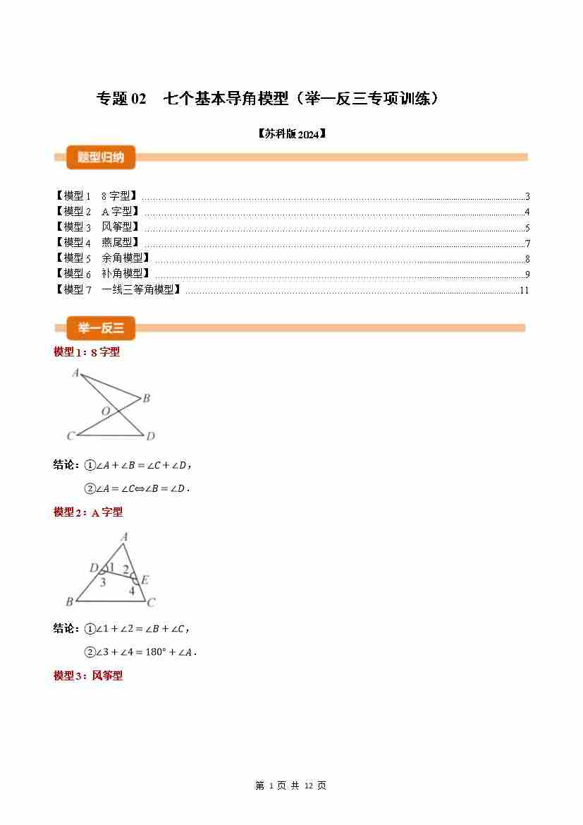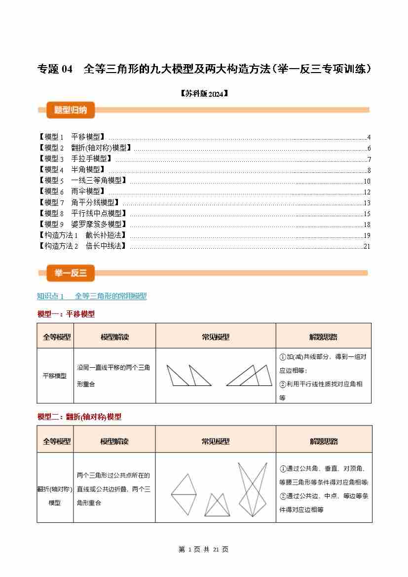 【苏科】专题04 全等三角形的九大模型及两大构造方法(原卷版)