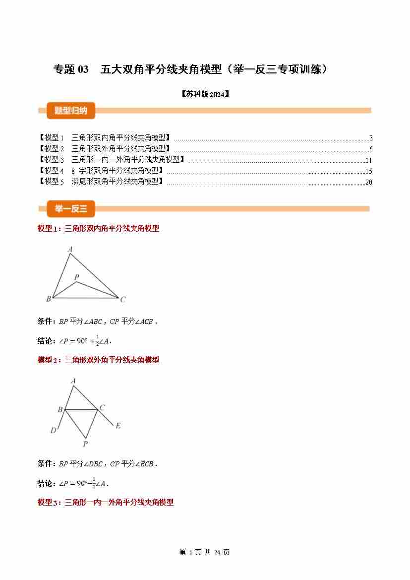 【苏科】专题03 五大双角平分线夹角模型(原卷版)