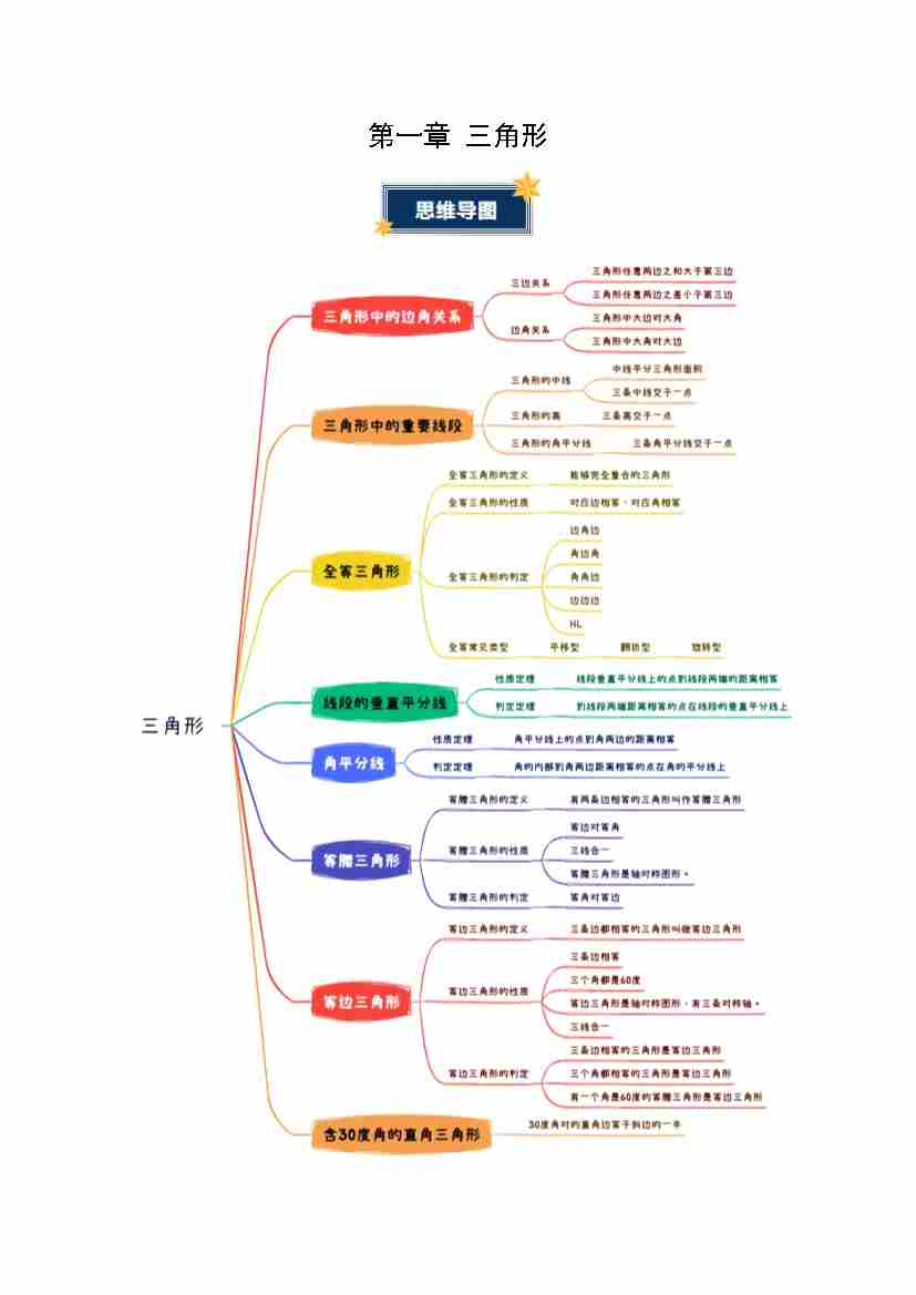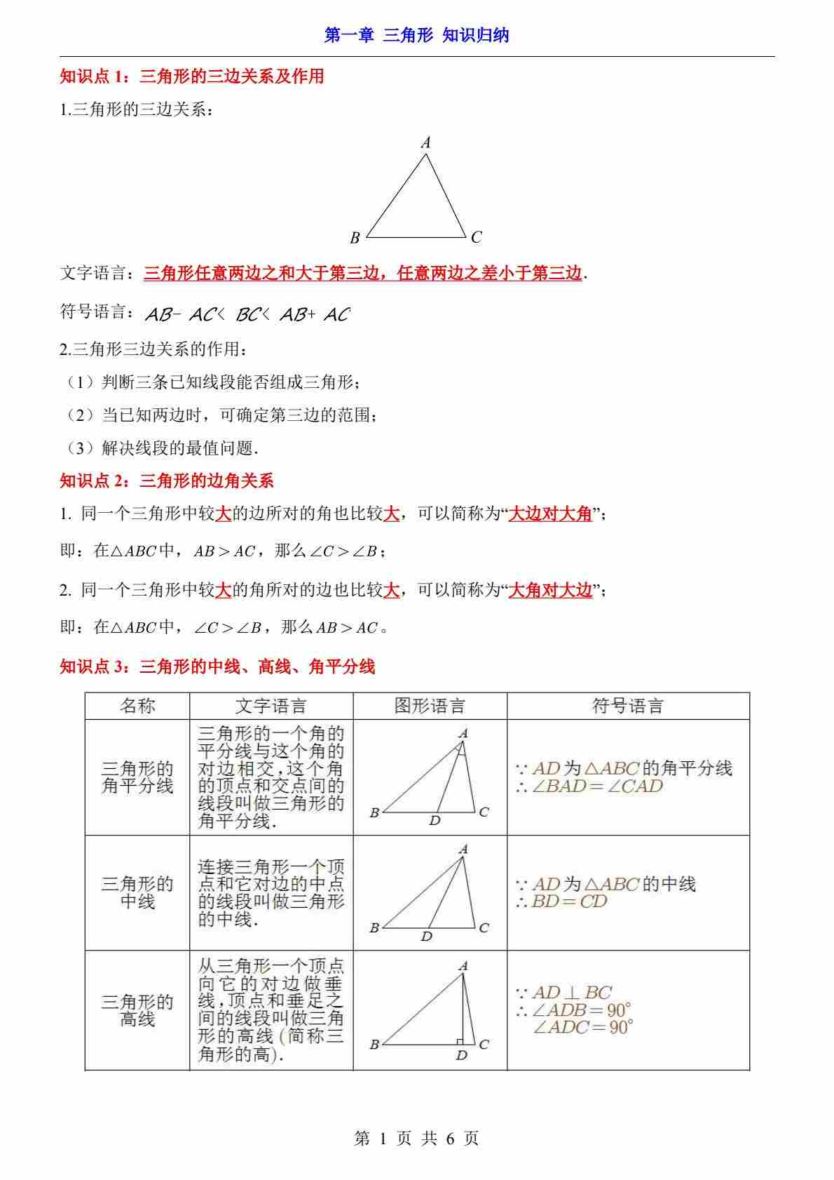 第1章 三角形(知识清单)(挖空版)数学苏科版2024八年级上册