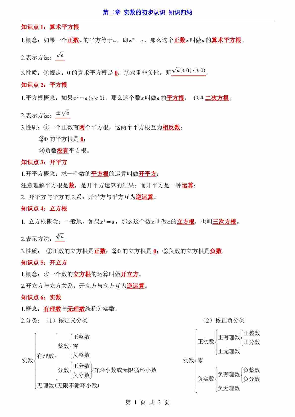 第2章 实数的初步认识(知识清单)(挖空版)数学苏科版2024八年级上册