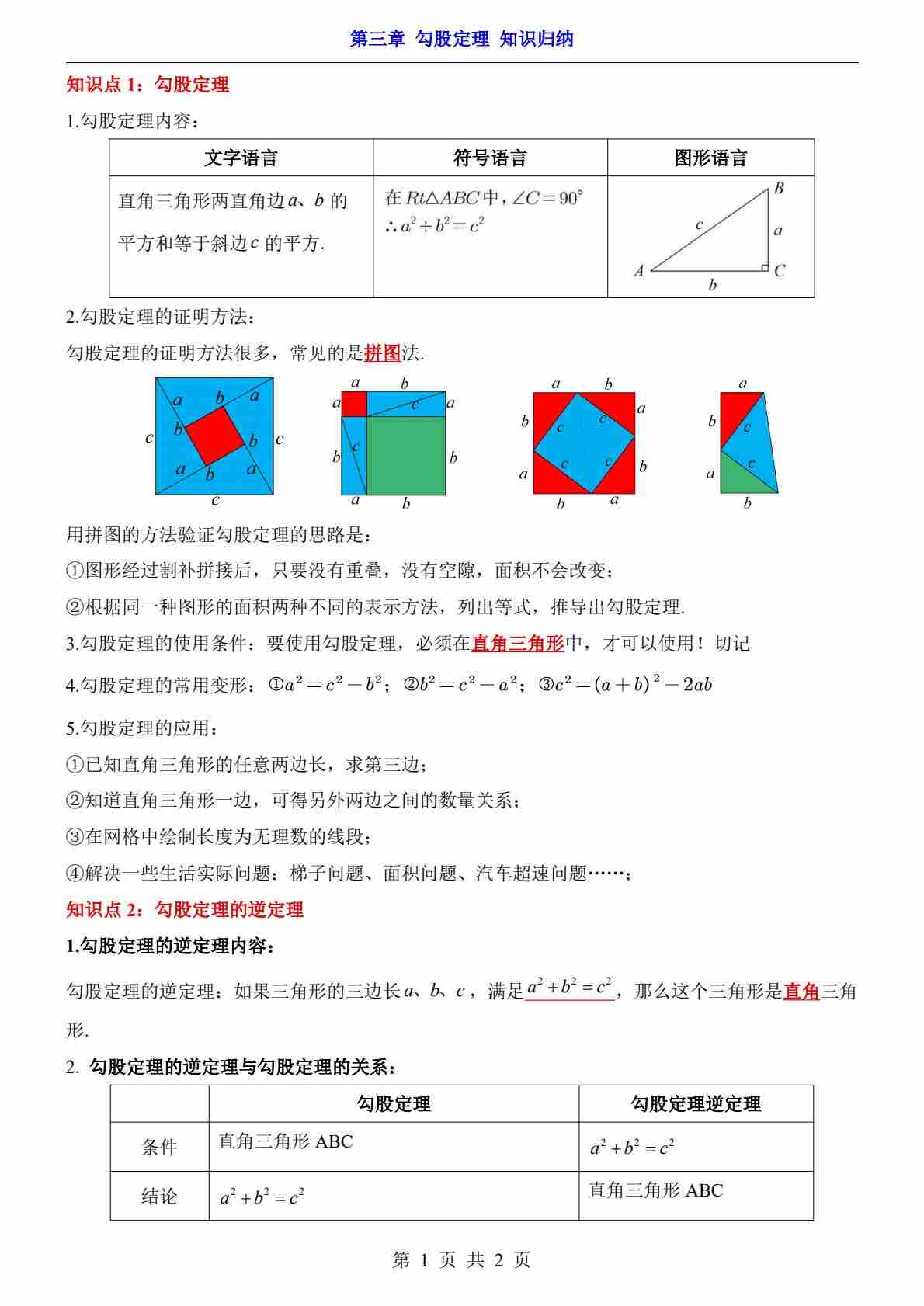 第3章 勾股定理(知识清单)(答案版)数学苏科版2024八年级上册