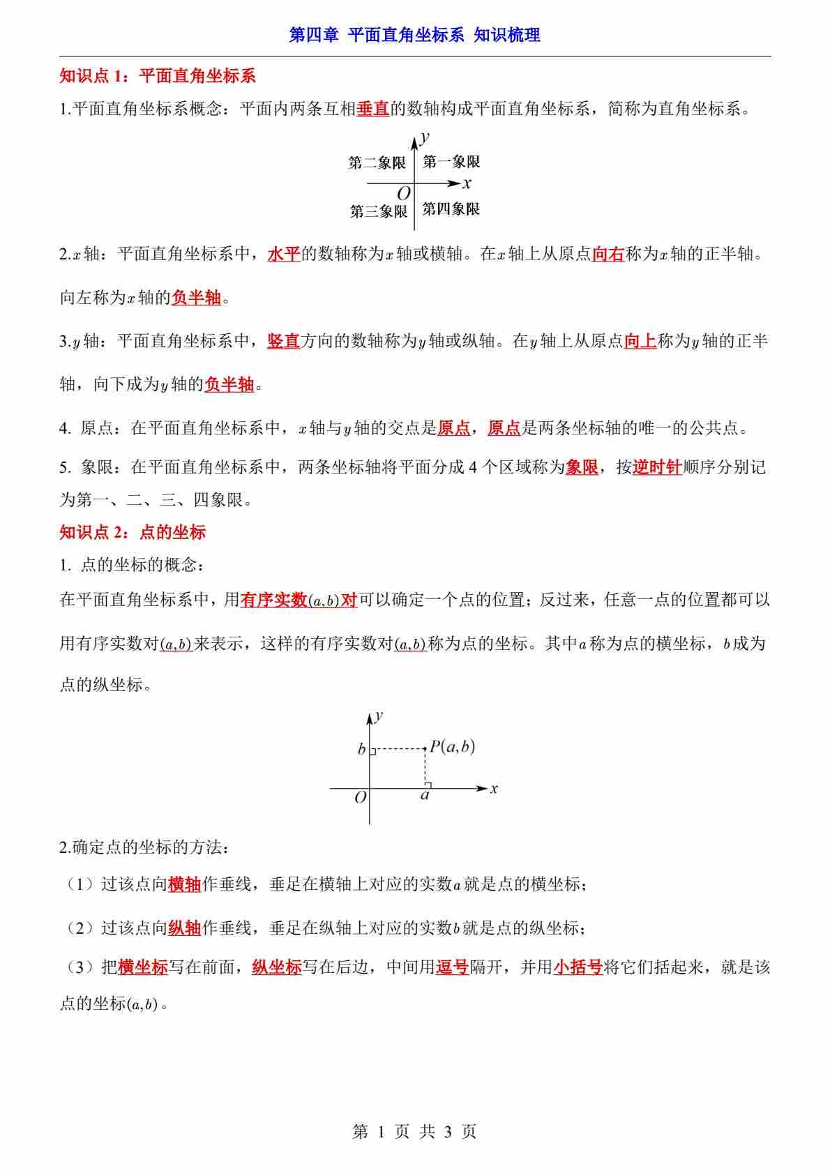 第4章 平面直角坐标系(知识清单)(答案版)数学苏科版2024八年级上册
