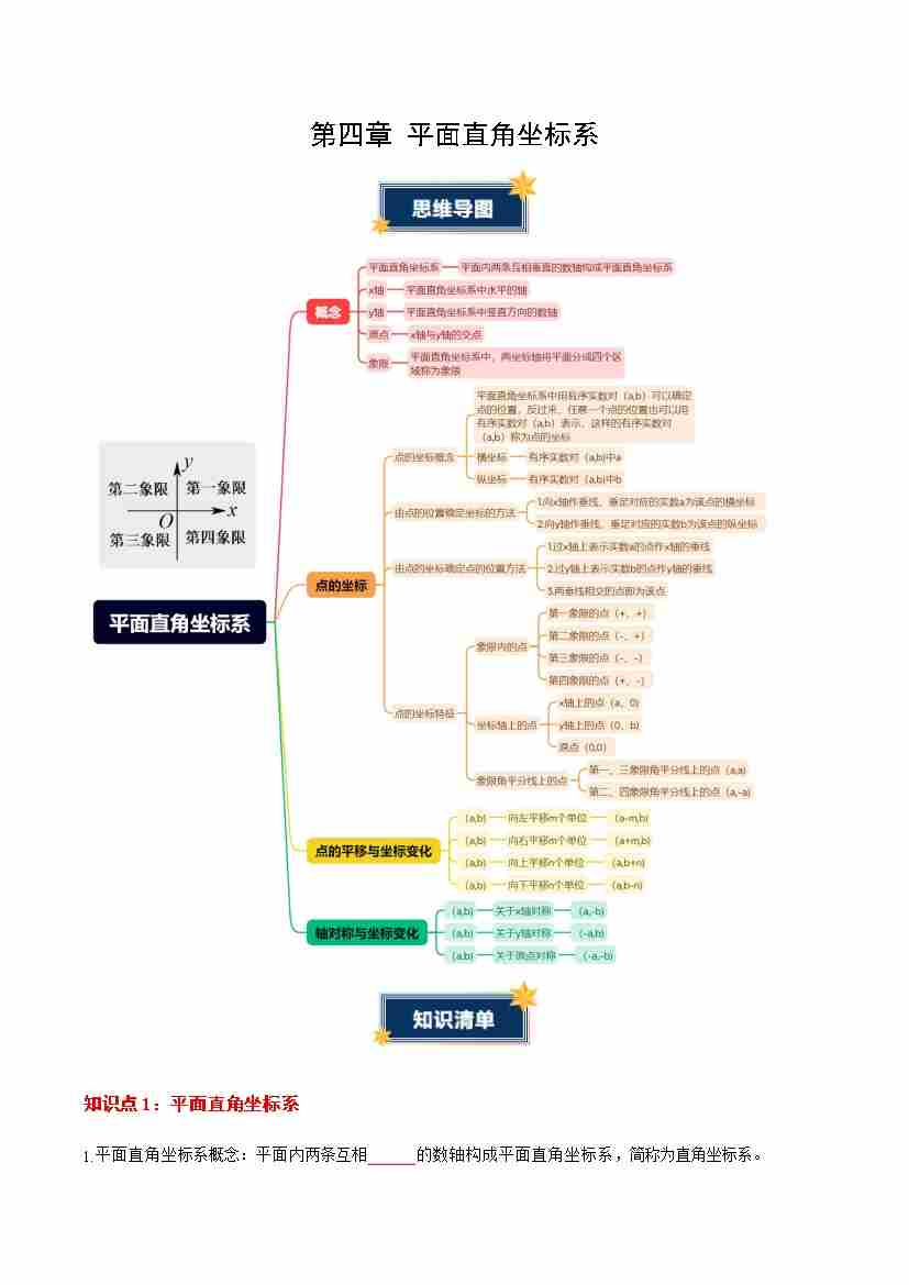 第4章 平面直角坐标系(知识清单)(挖空版)数学苏科版2024八年级上册