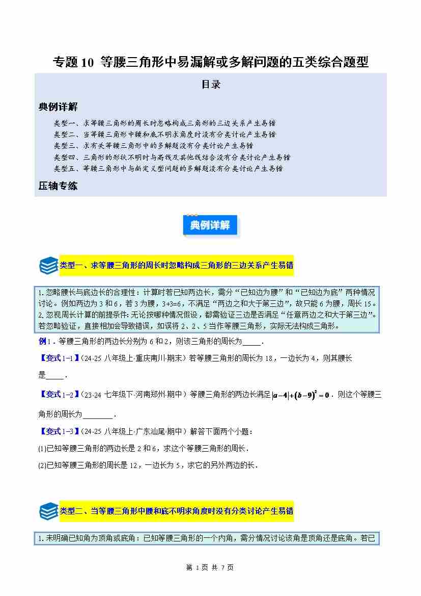 专题10 等腰三角形中易漏解或多解问题的五类综合题型(原卷版)