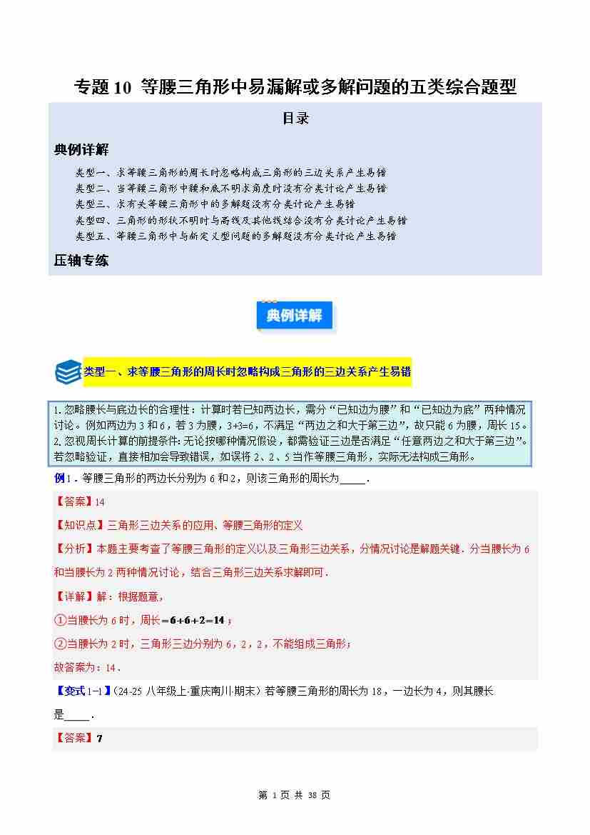 专题10 等腰三角形中易漏解或多解问题的五类综合题型(解析版)