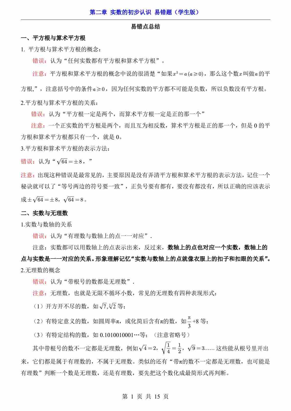 第2章 实数的初步认识(易错题)