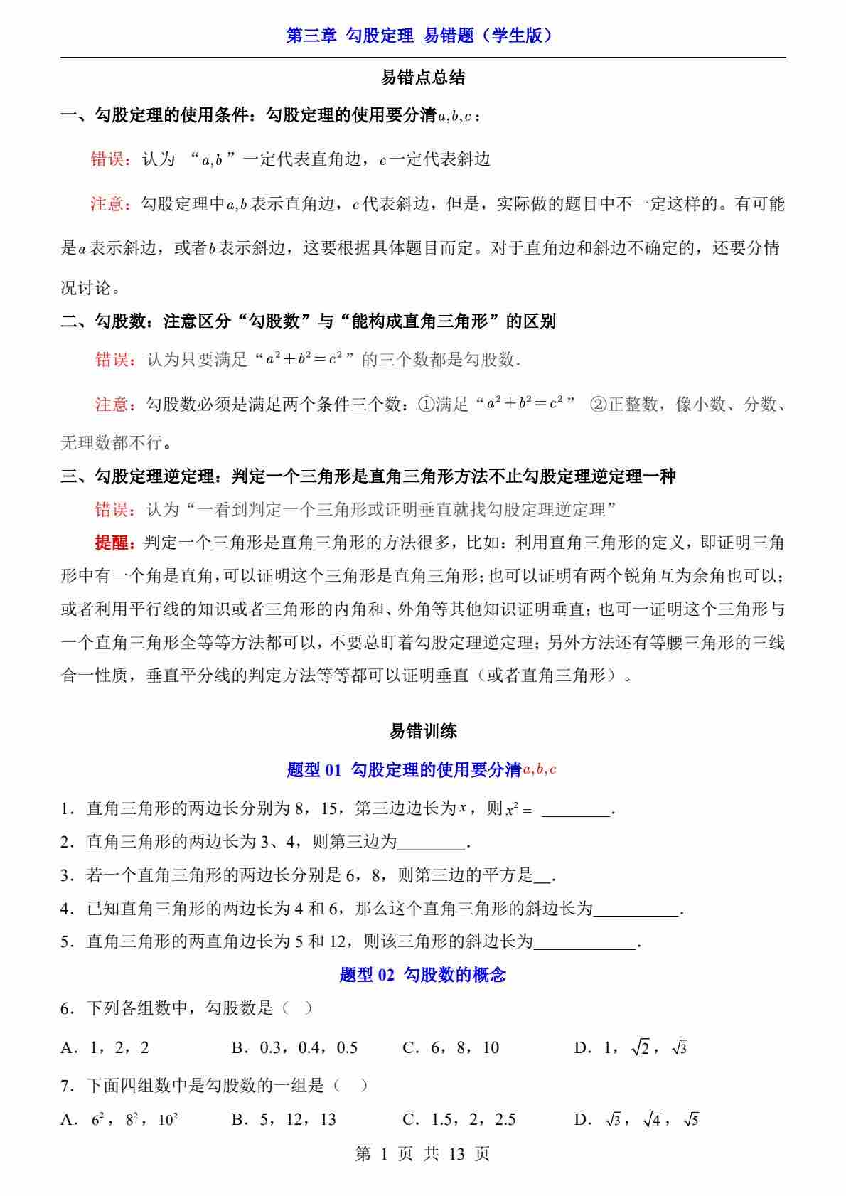 第3章 勾股定理(易错题)