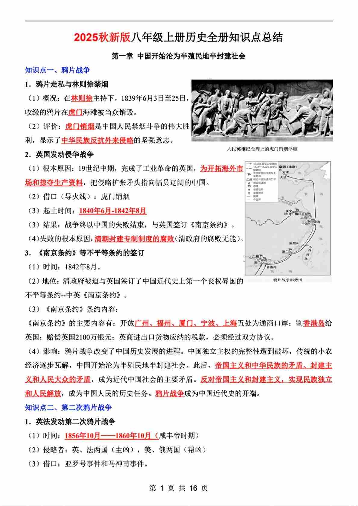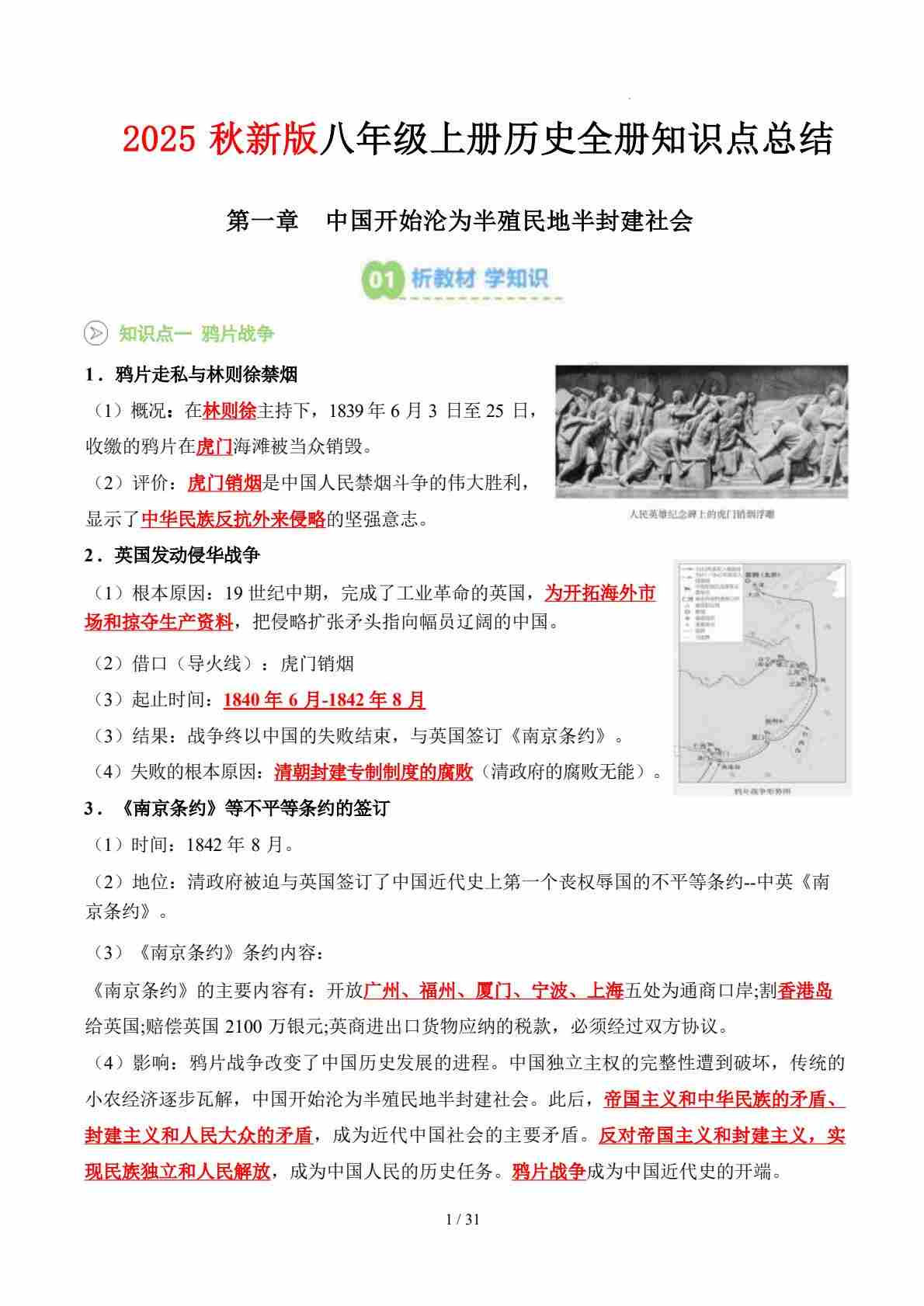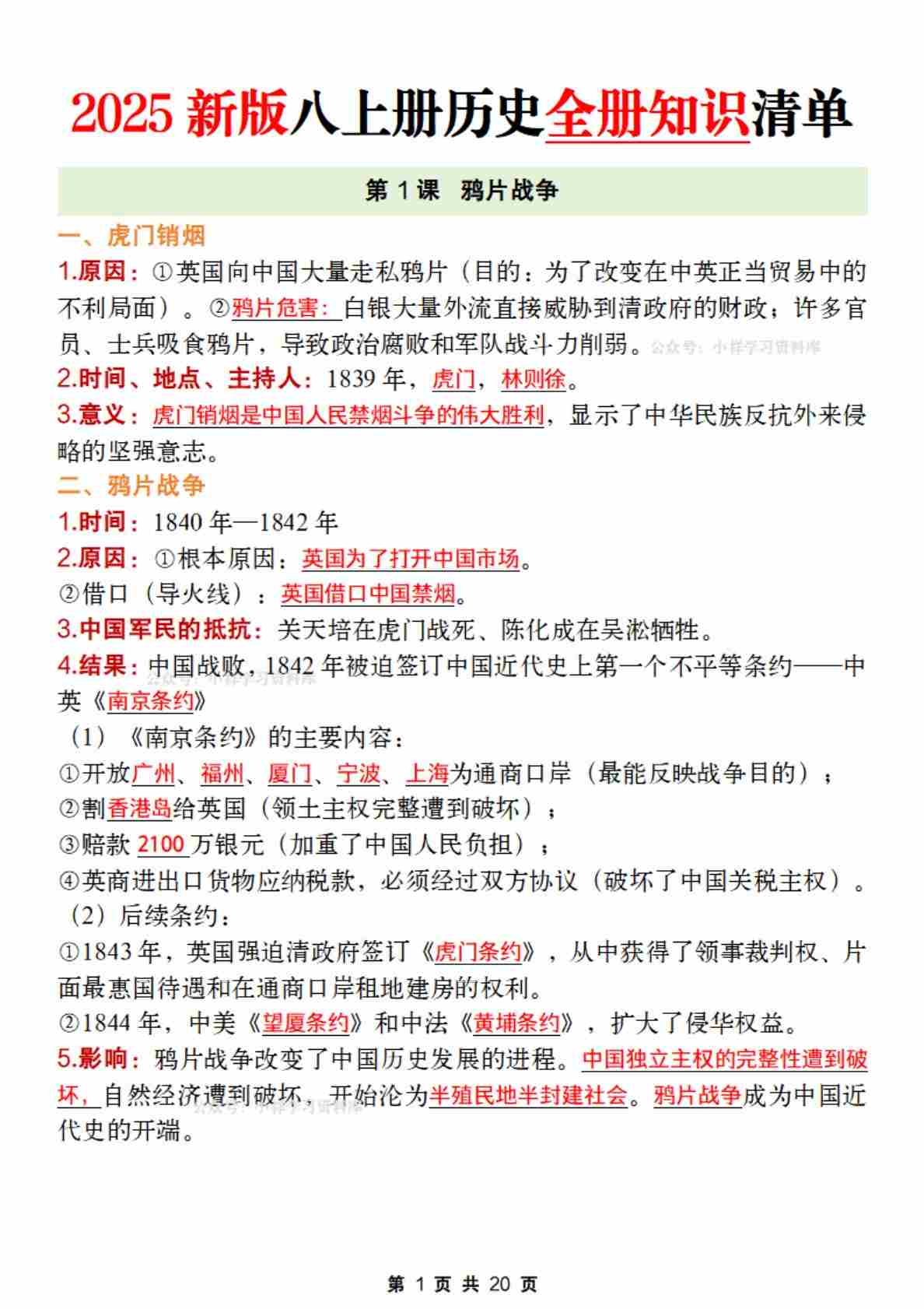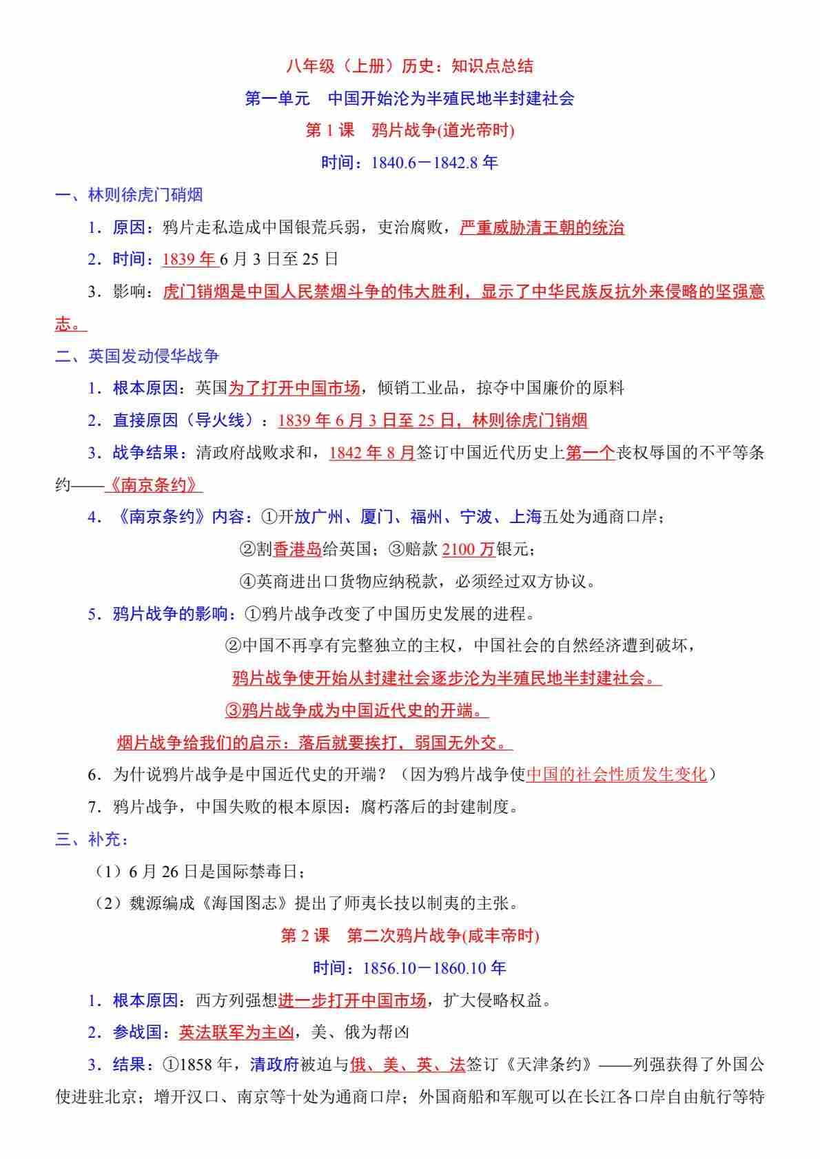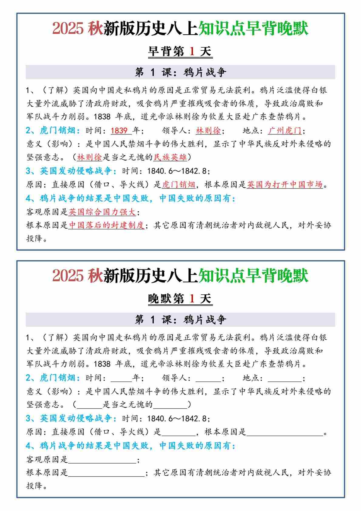 部编版2025秋新版八上历史必背知识清单(背诵版)