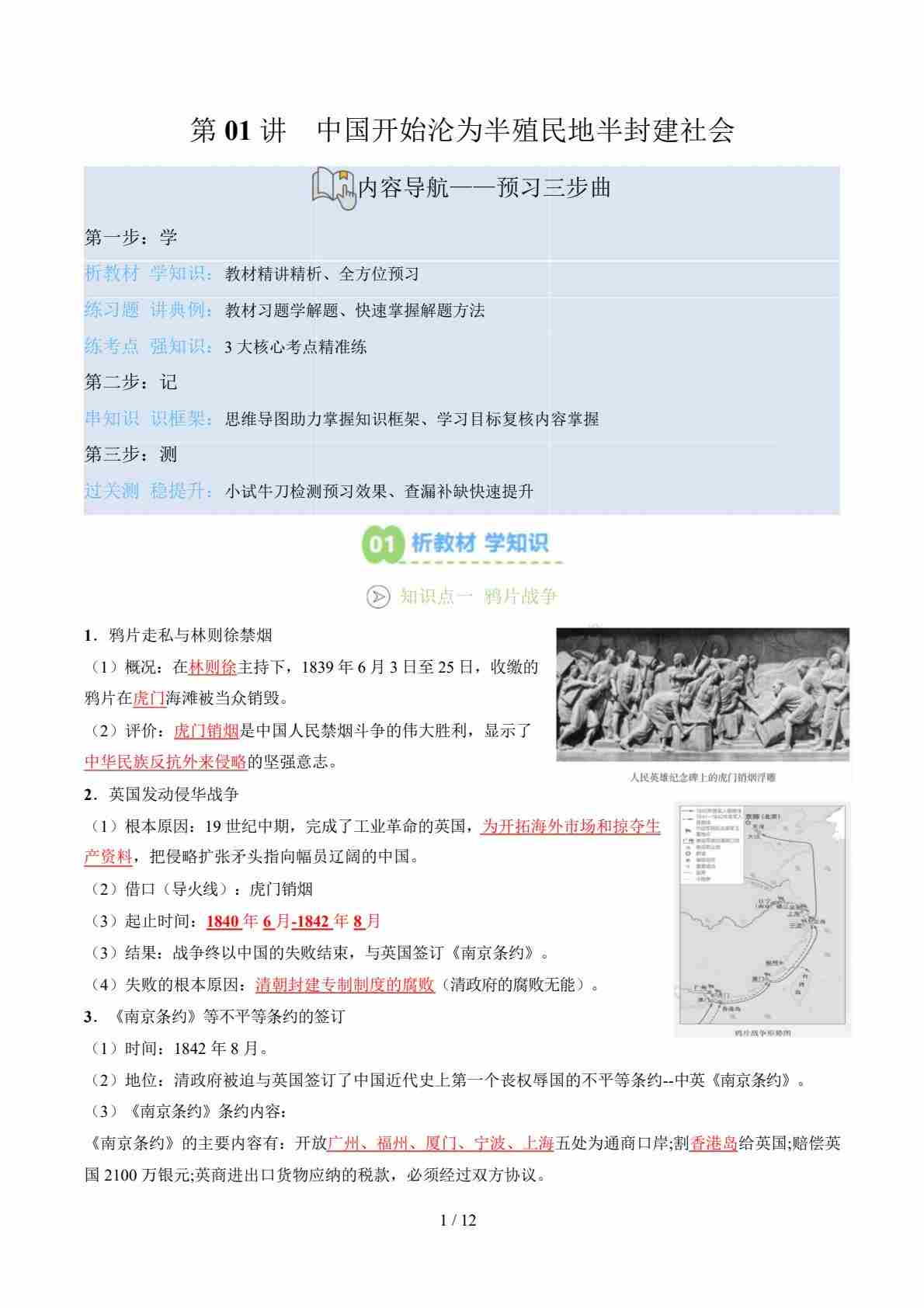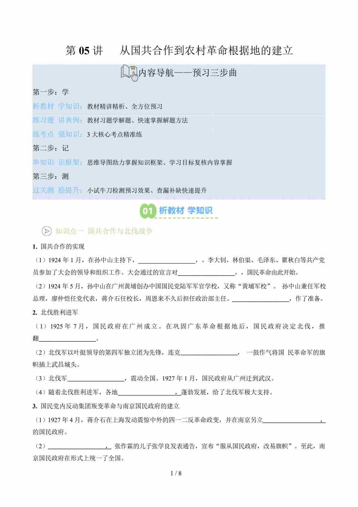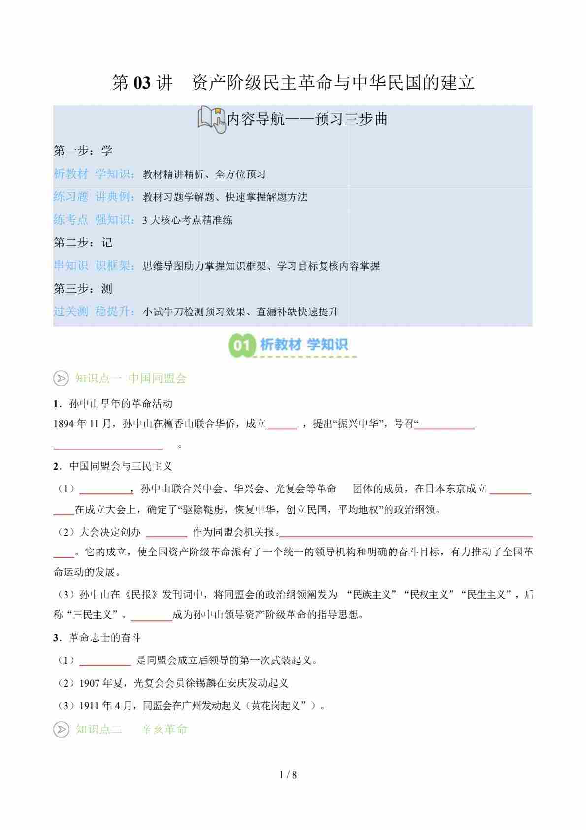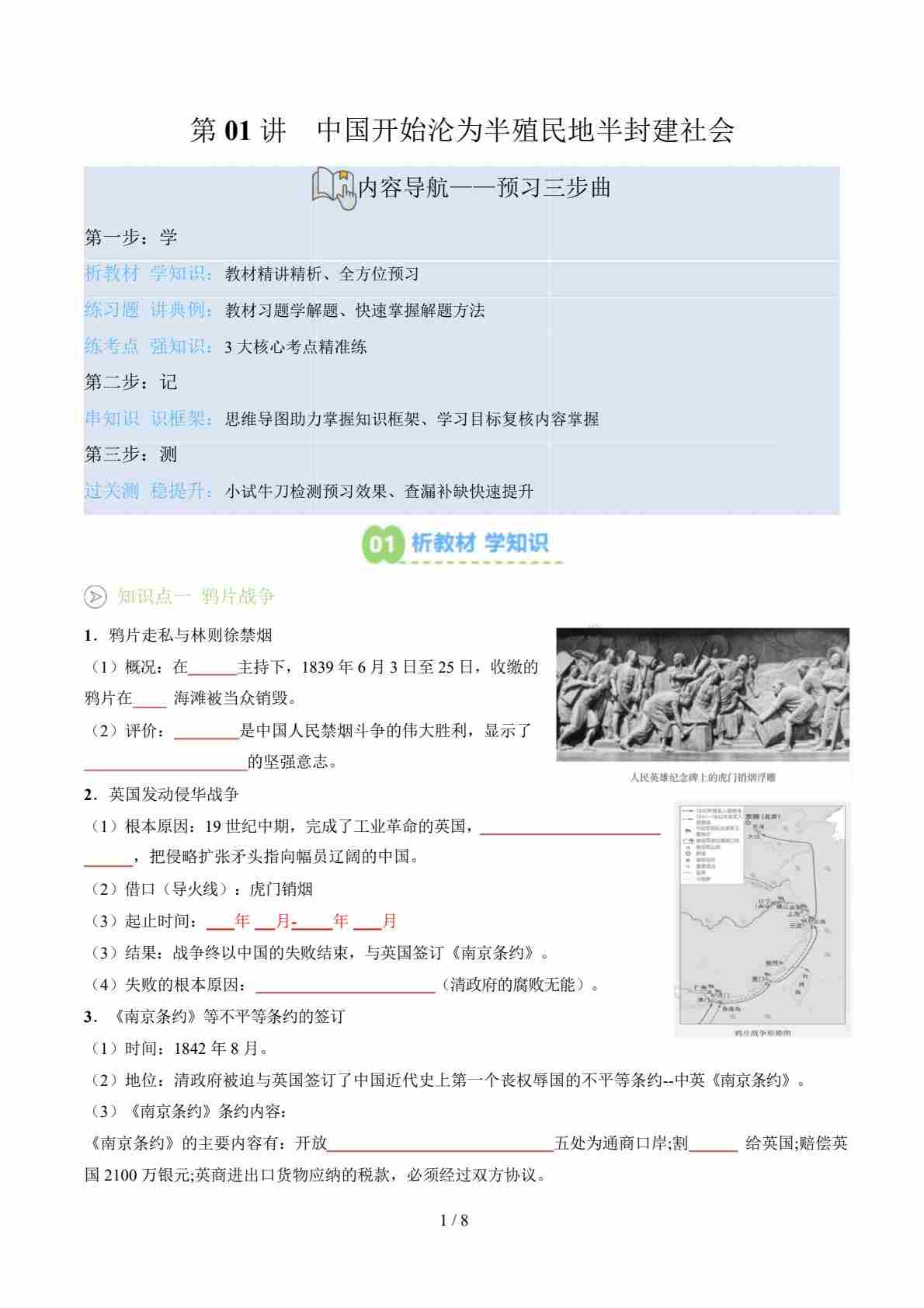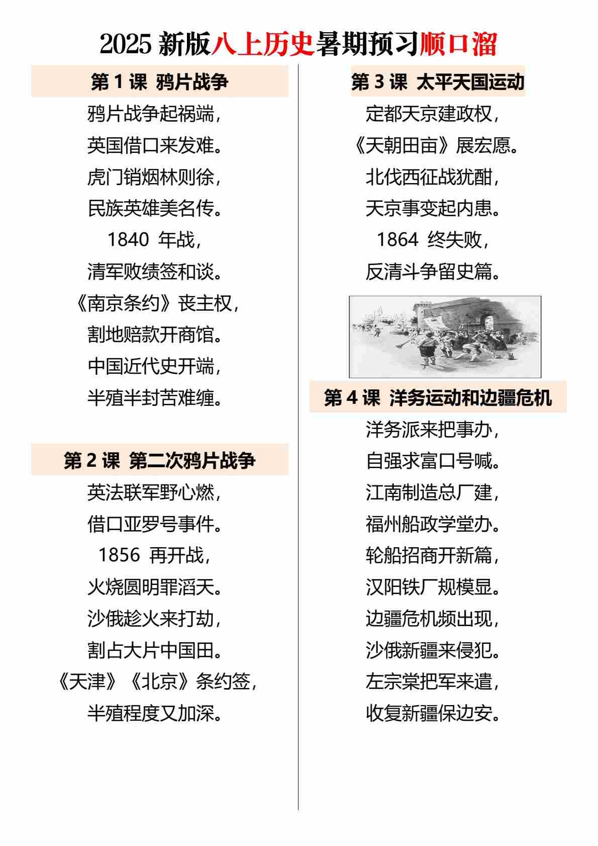部编版2025秋新版八上历史必背知识清单(背诵版)