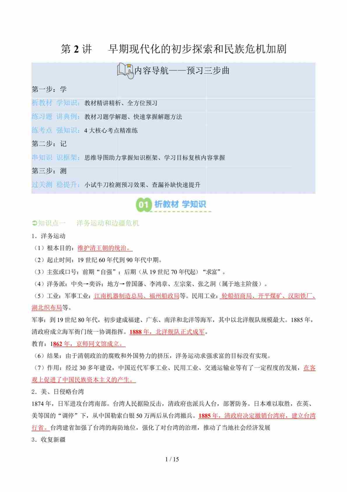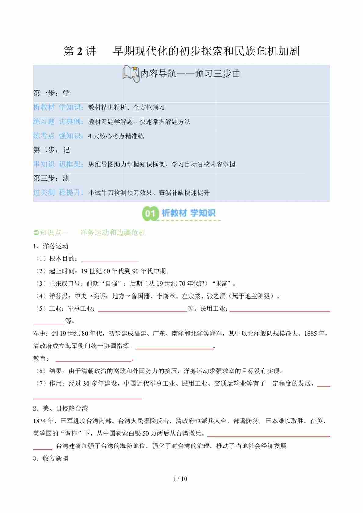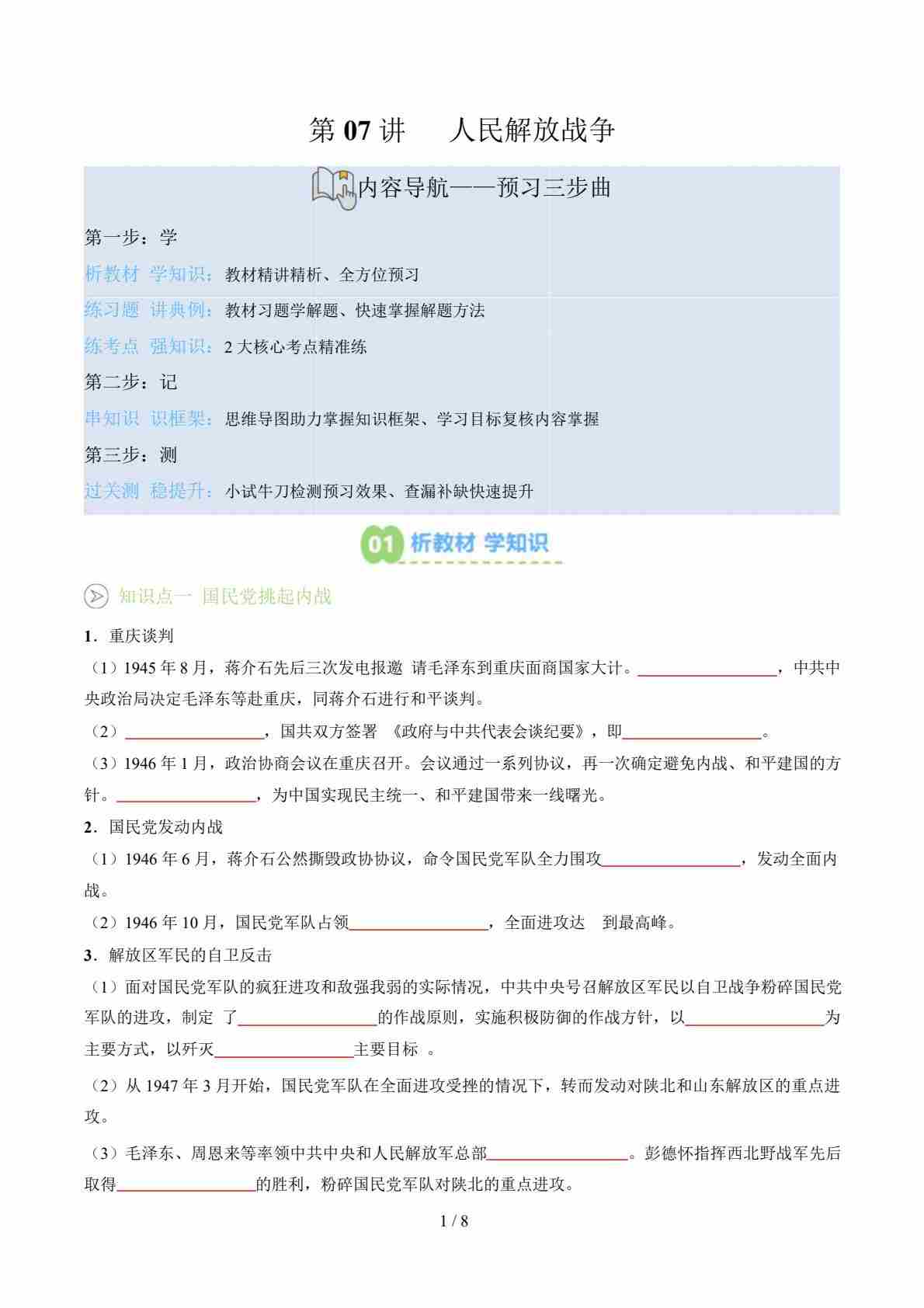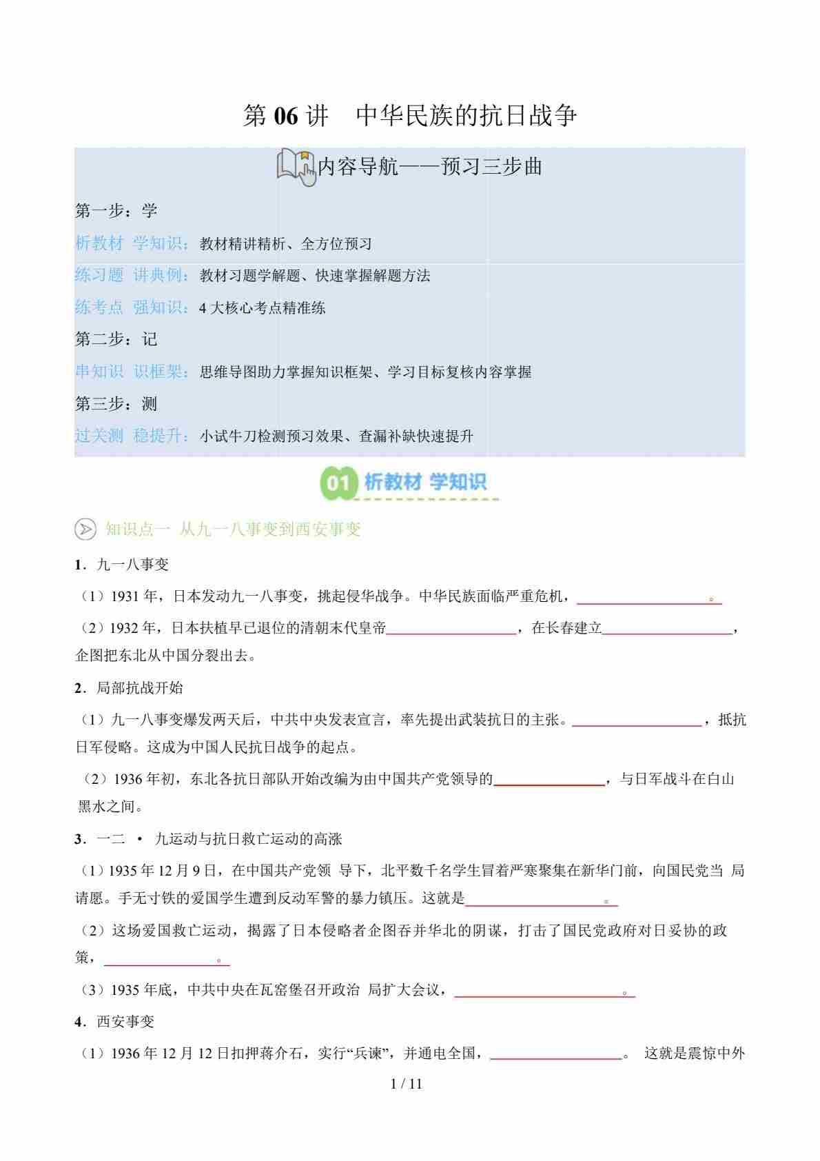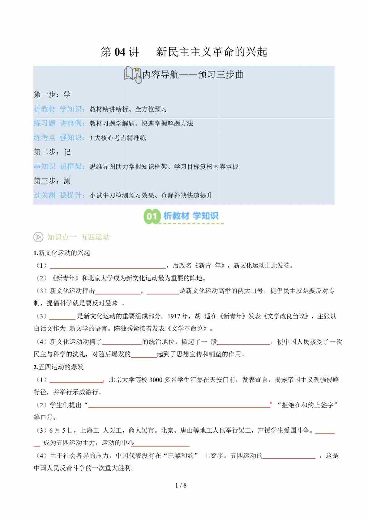 部编版2025秋新版八上历史必背知识清单(背诵版)