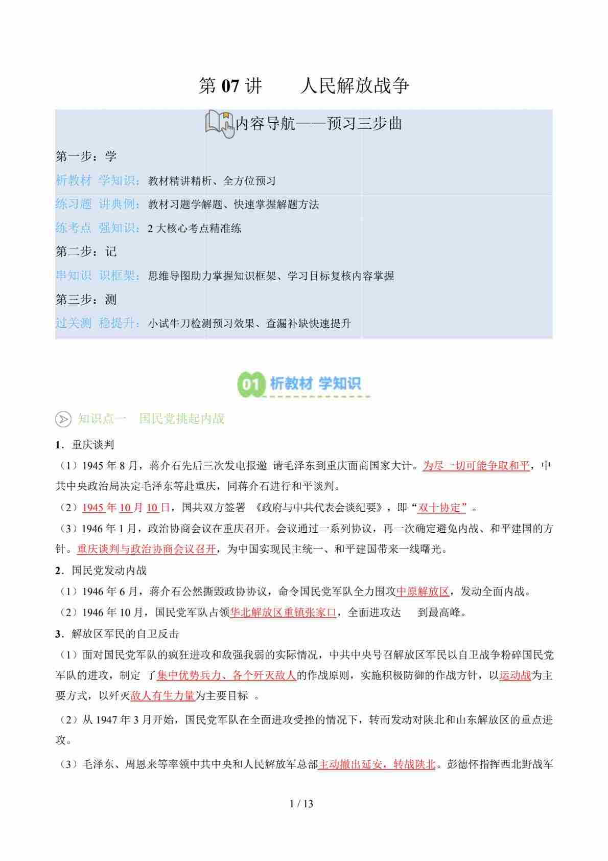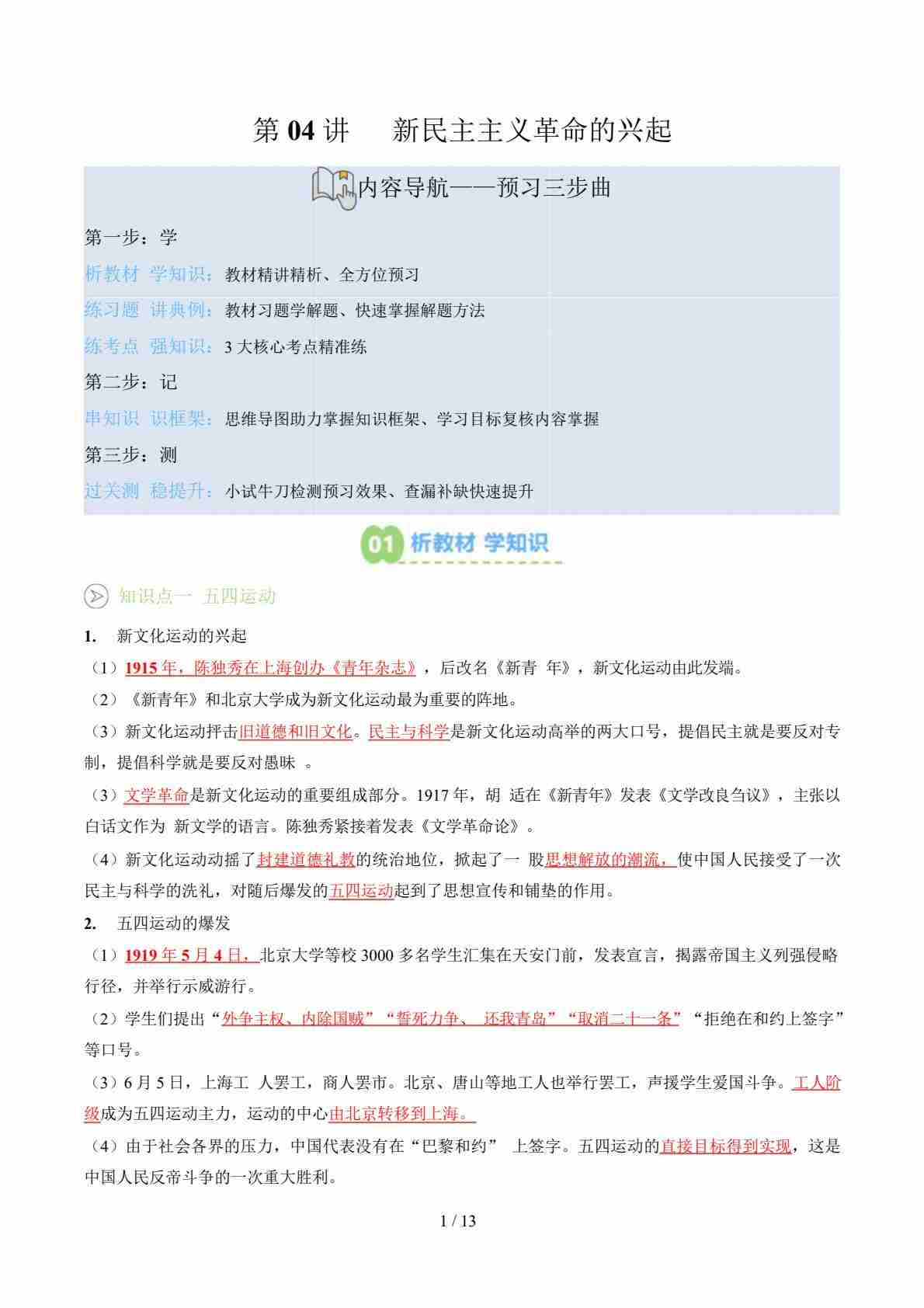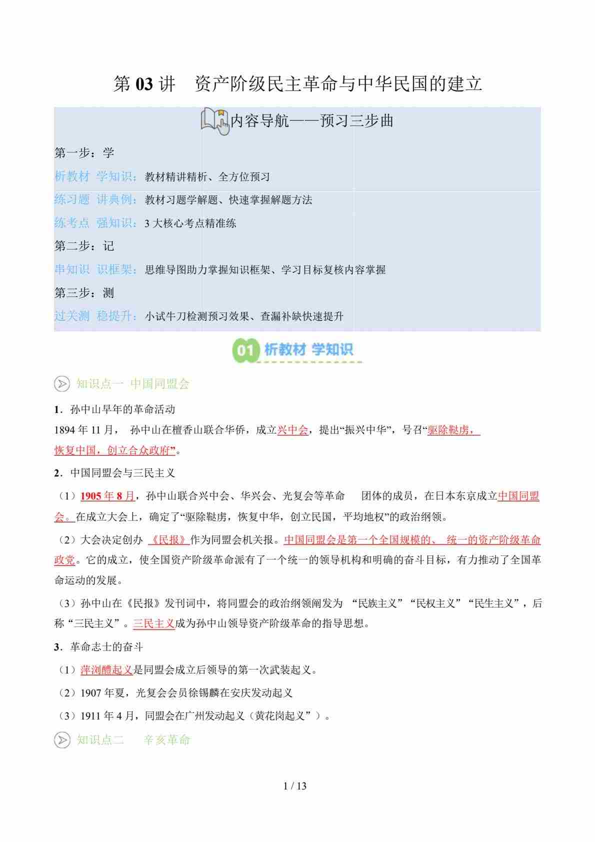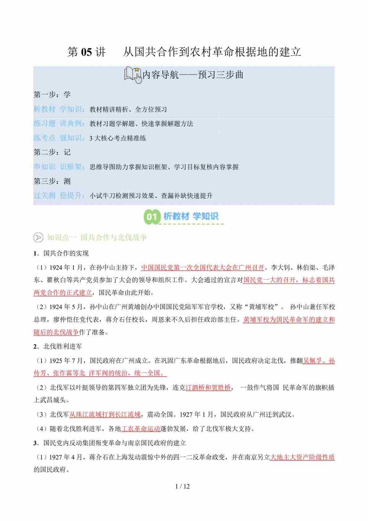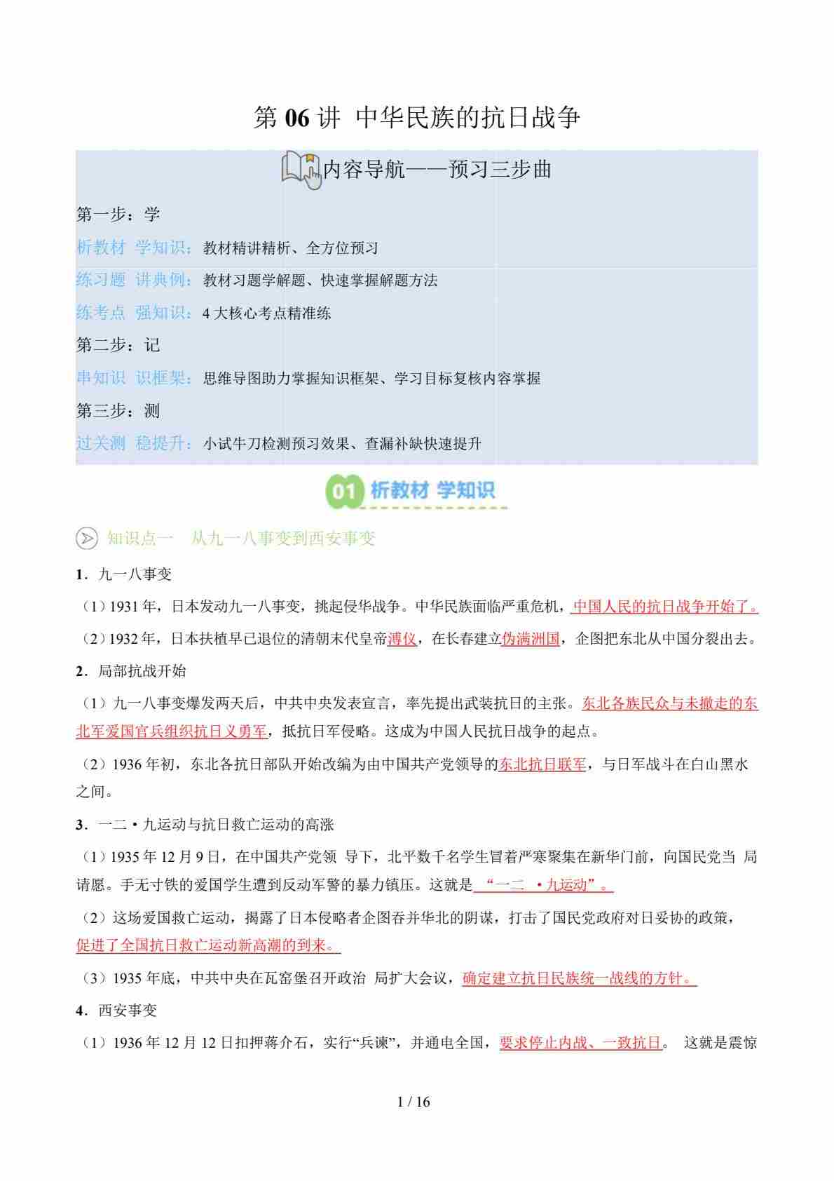 部编版2025秋新版八上历史必背知识清单(背诵版)