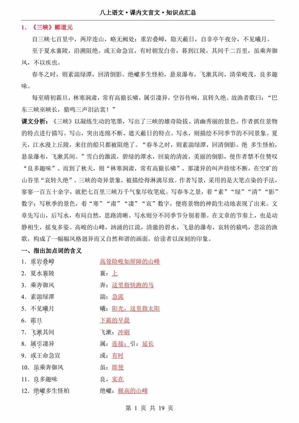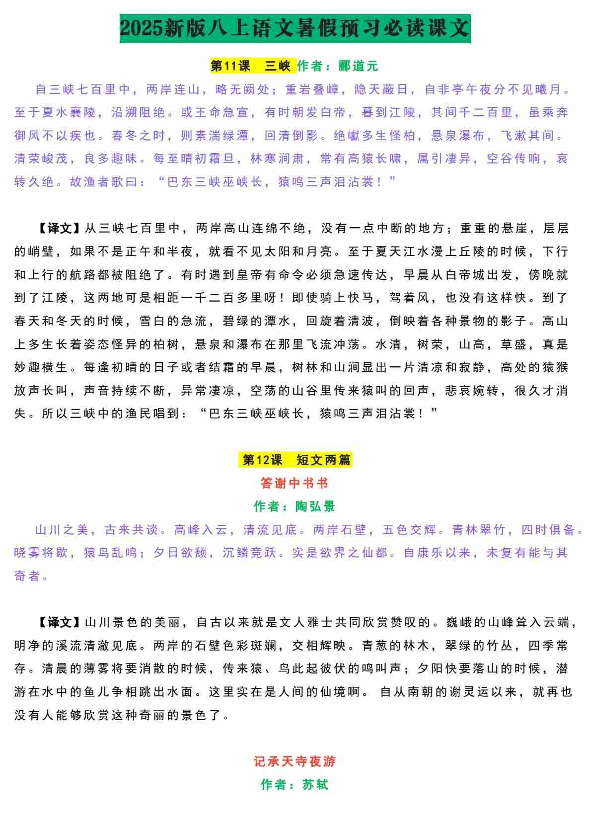 八上古诗文背诵详解部编版
