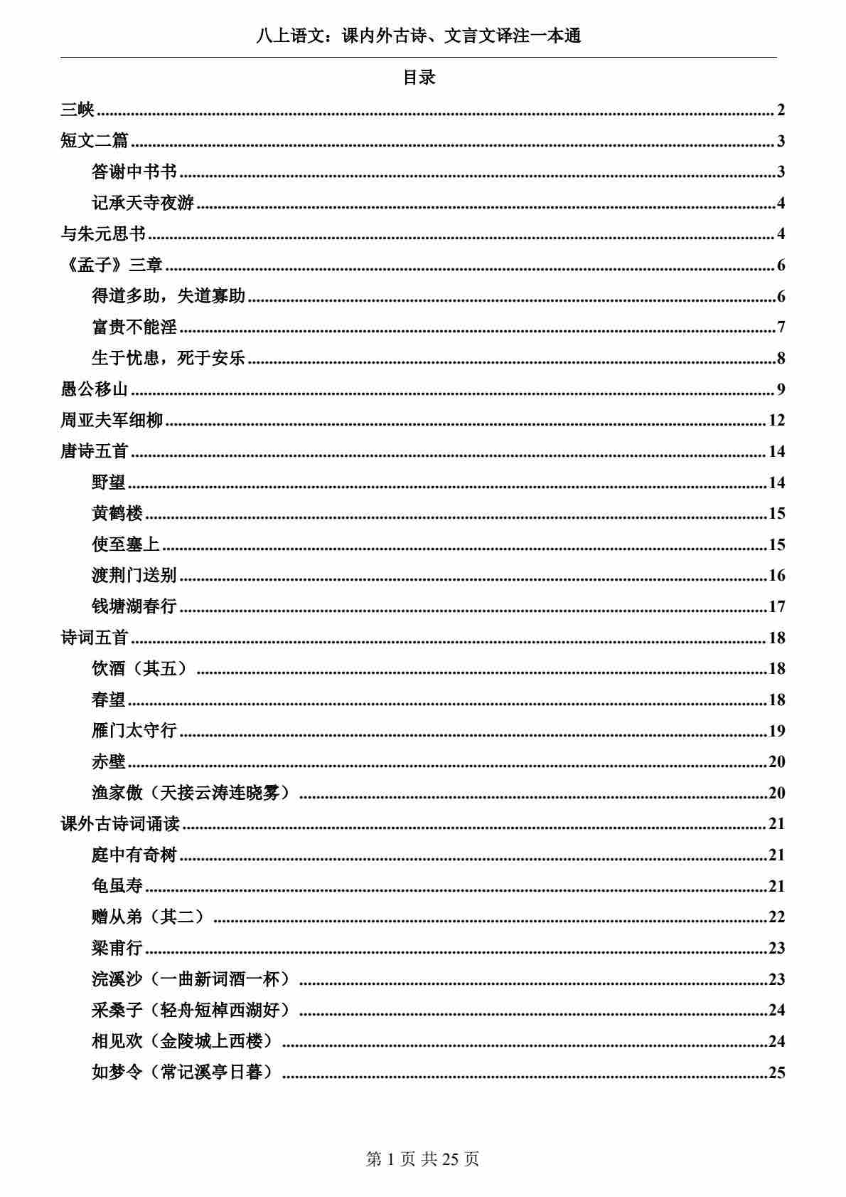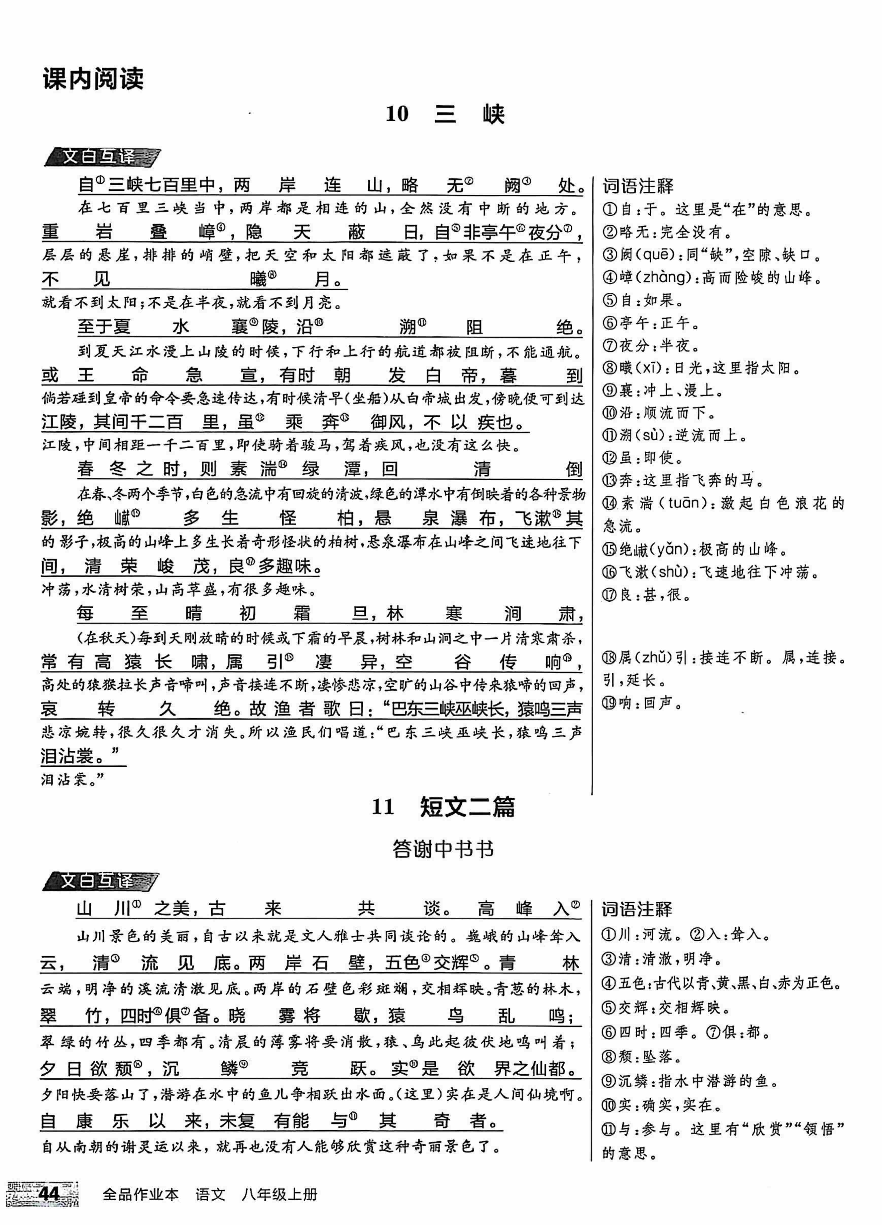 八上语文课内外古诗&文言文译注一本通部编版