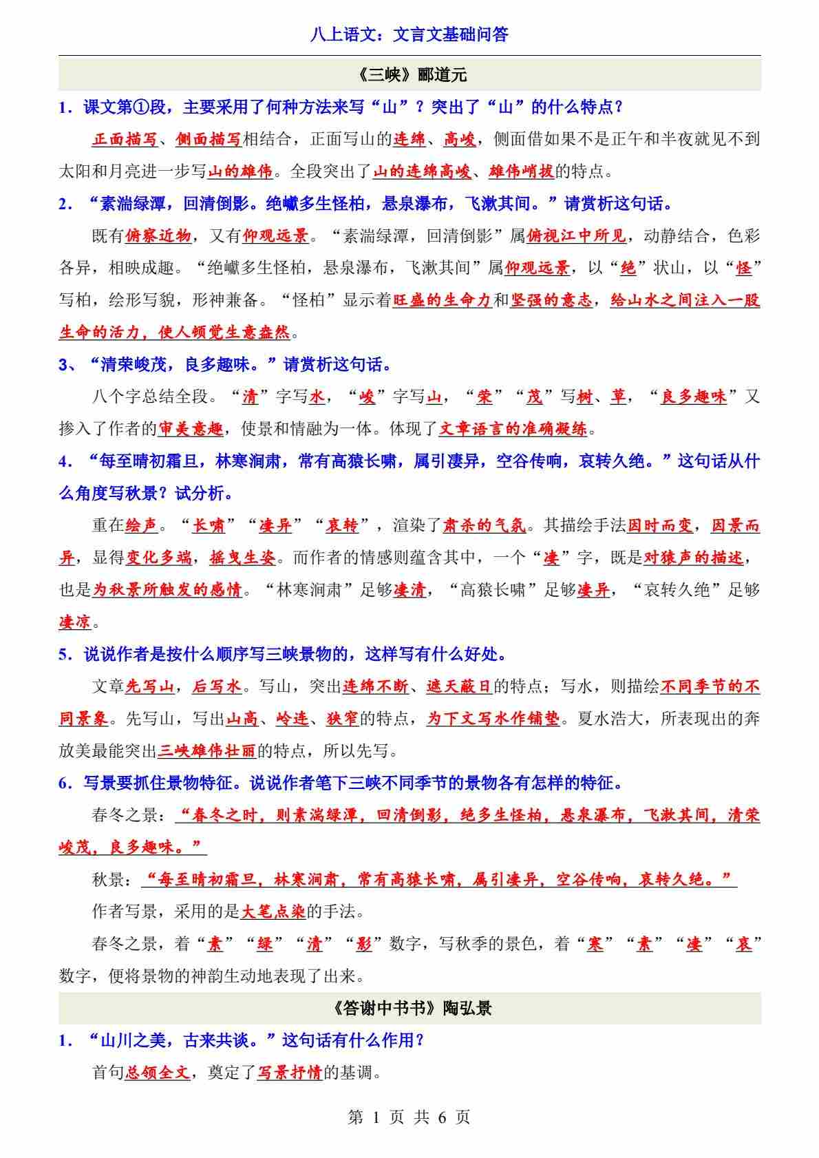 八上语文文言文基础问答部编版