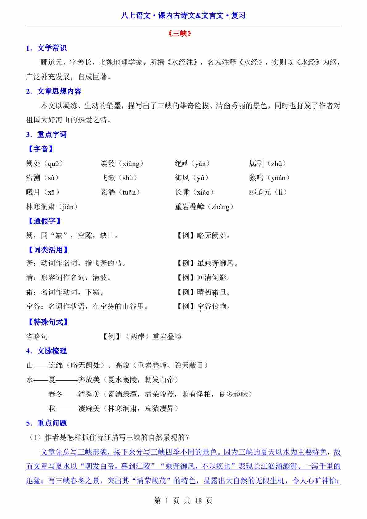 八年级上册文言文知识清单部编版
