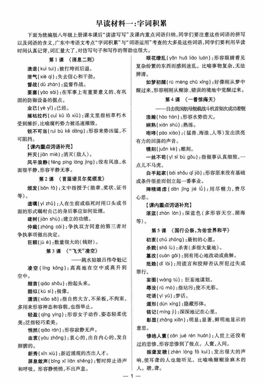 八上语文课内重点词语归纳部编版