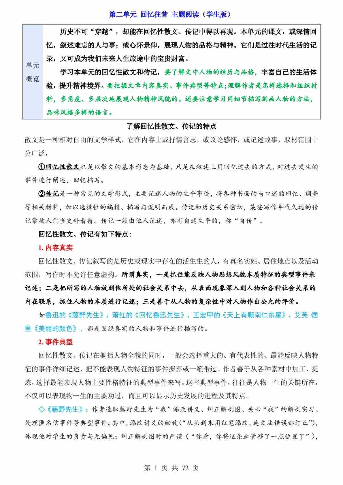第2单元 回忆往昔(主题阅读)