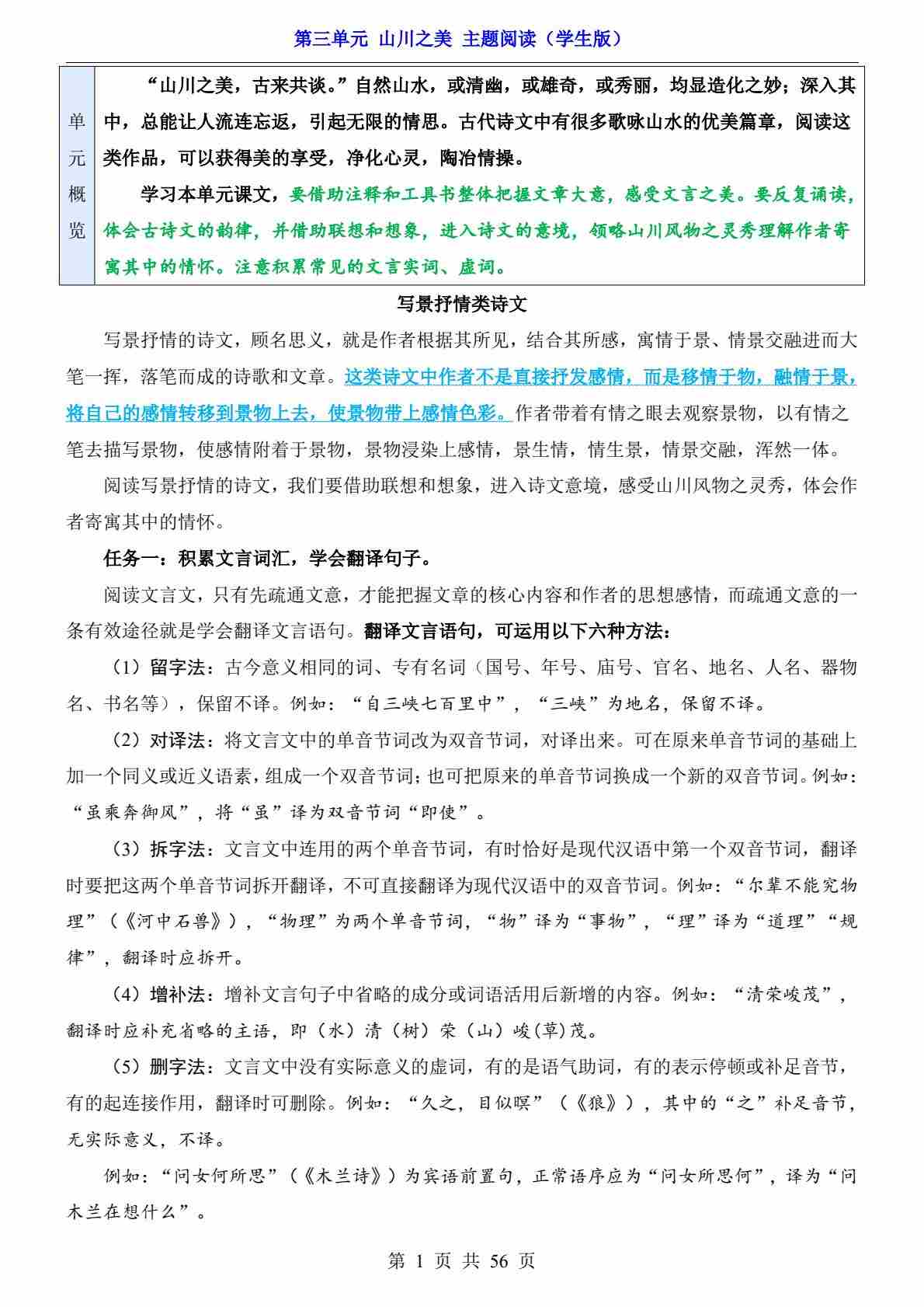 第3单元 山川之美(主题阅读)