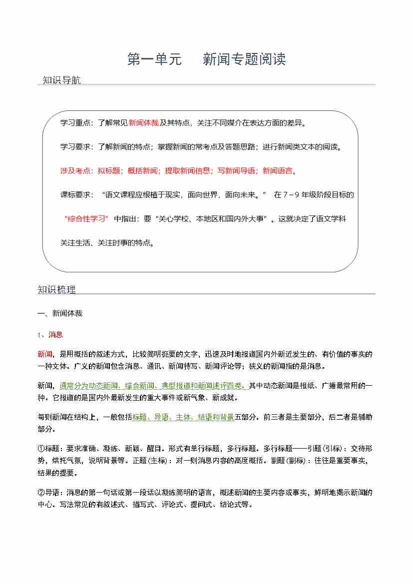第一单元 新闻专题阅读(学生版)