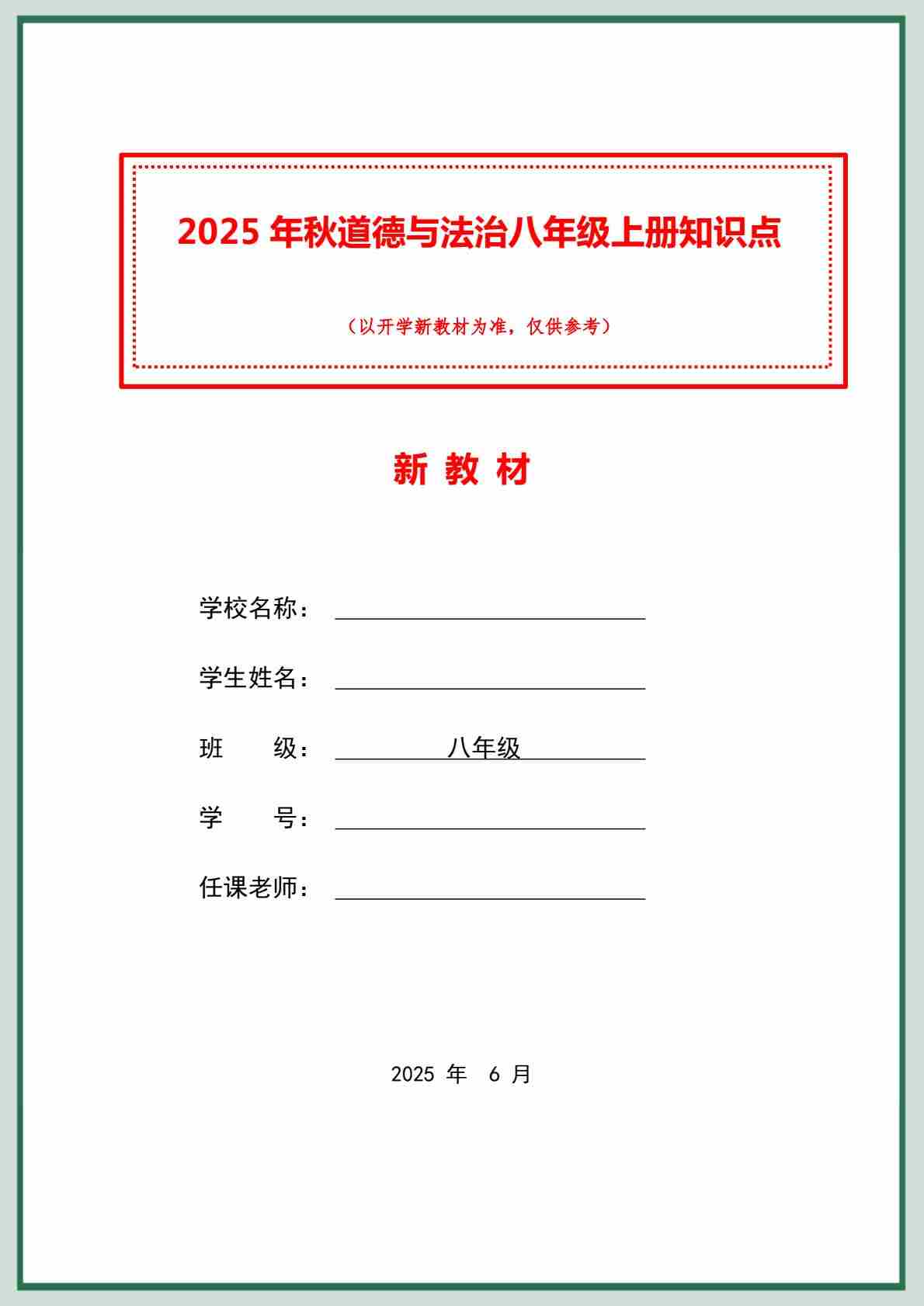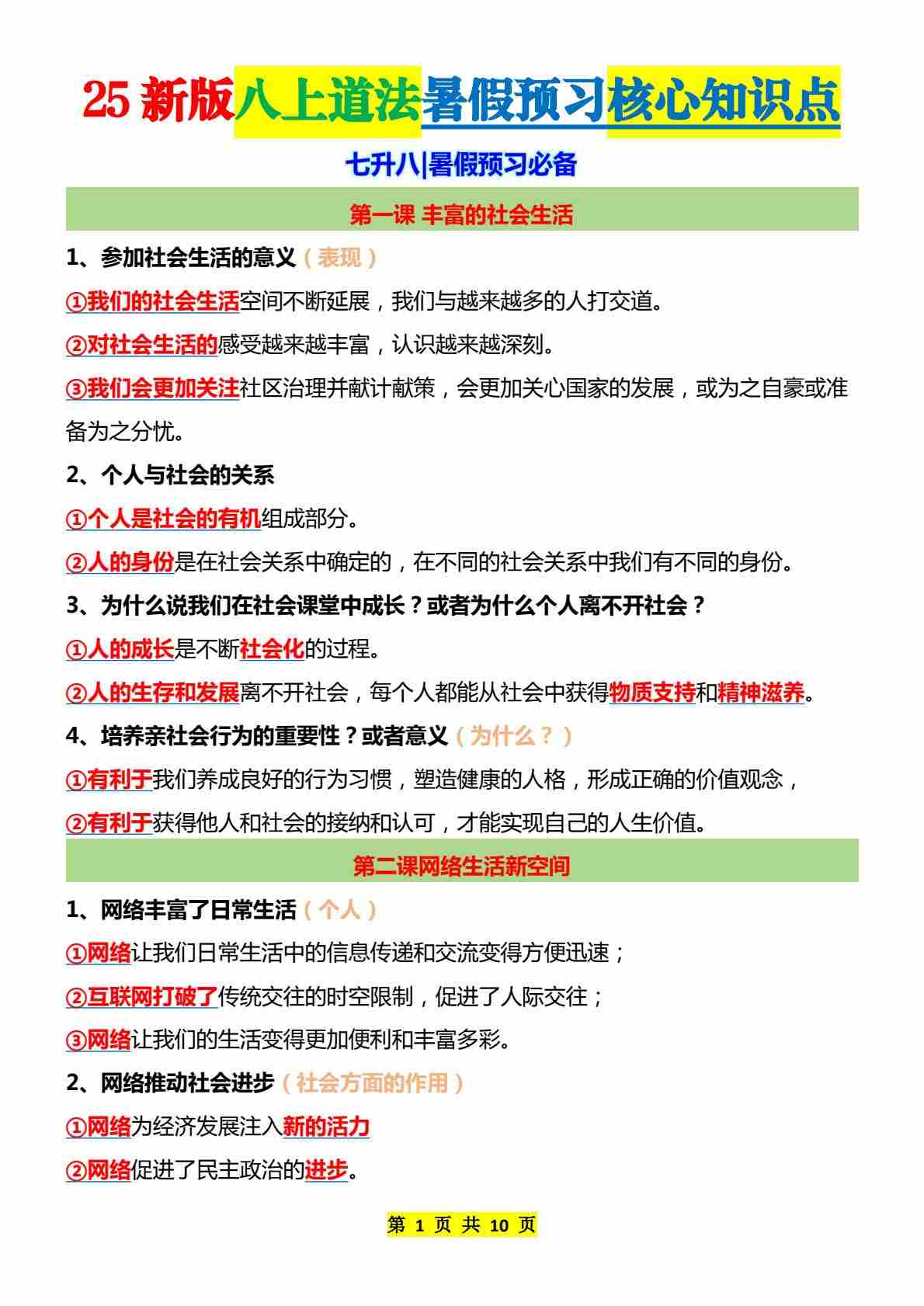 2025新版八上道法暑假预习核心知识点