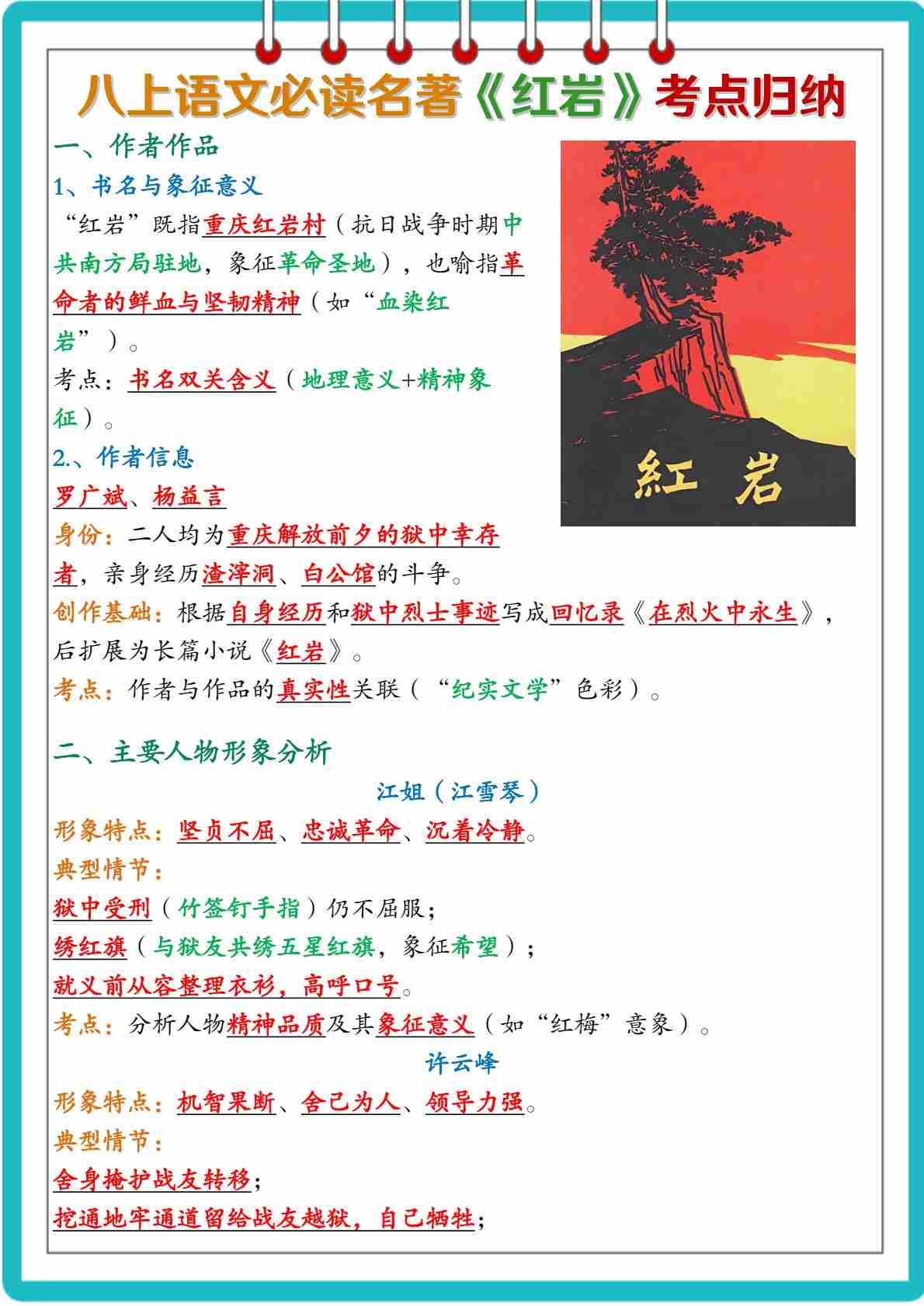 八上必读《红岩》考点手册