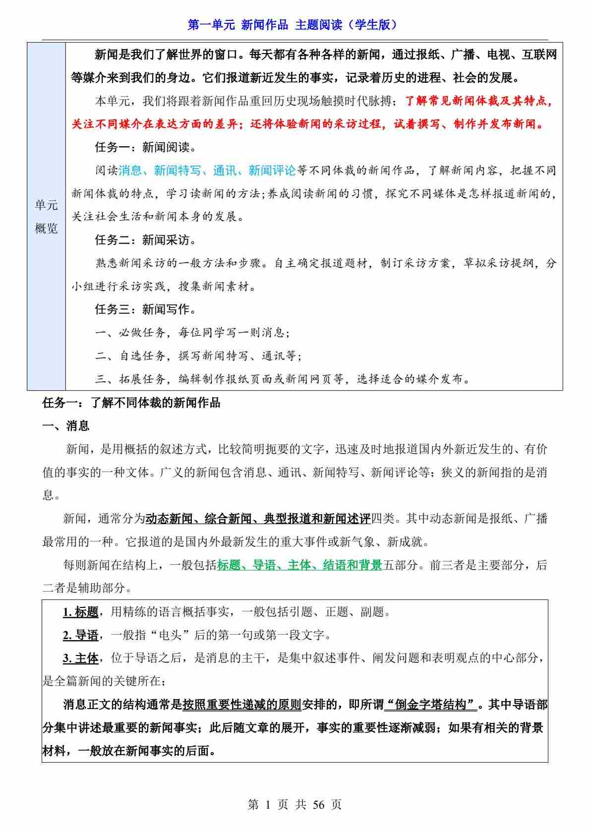 第1单元 新闻作品(主题阅读)