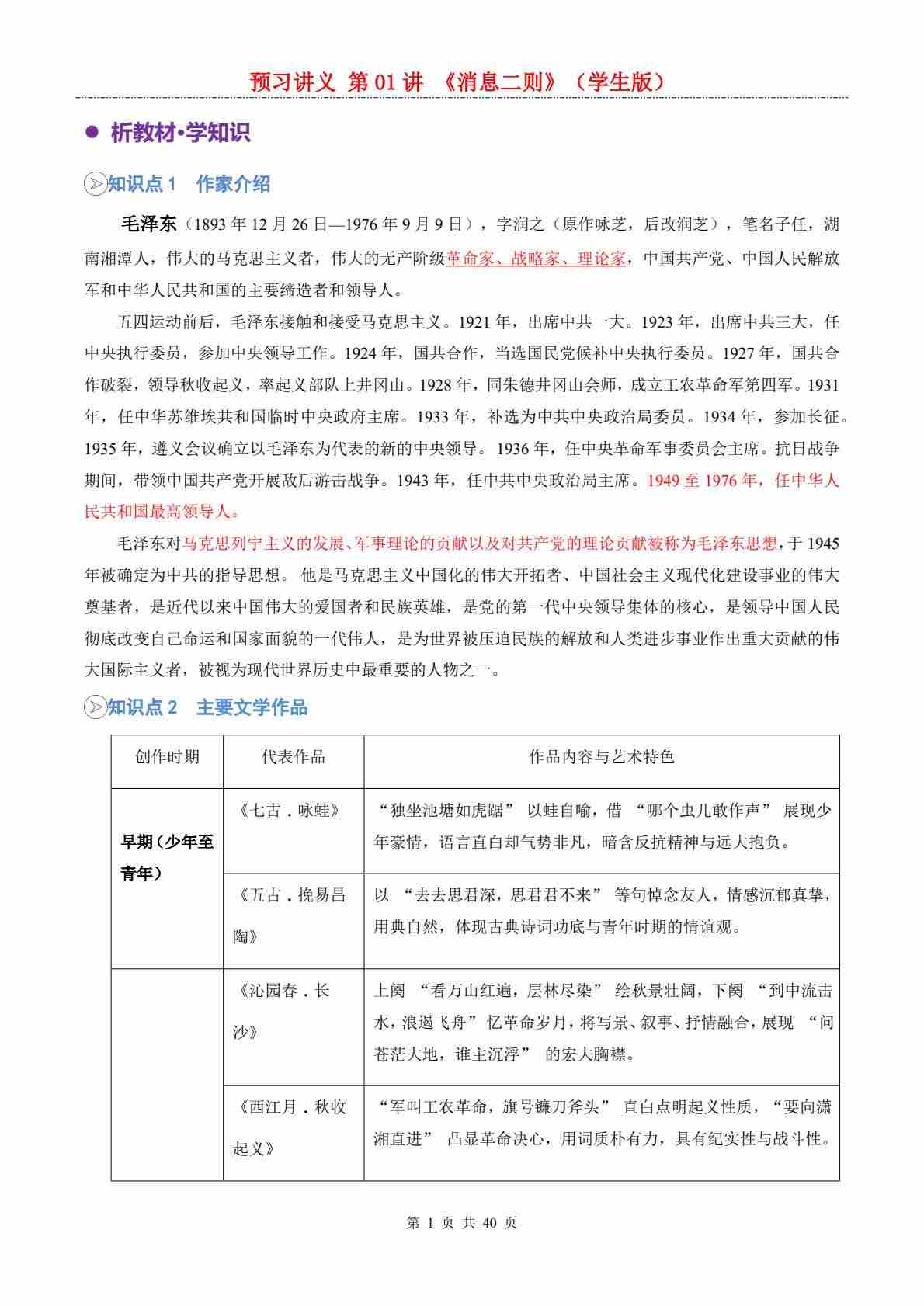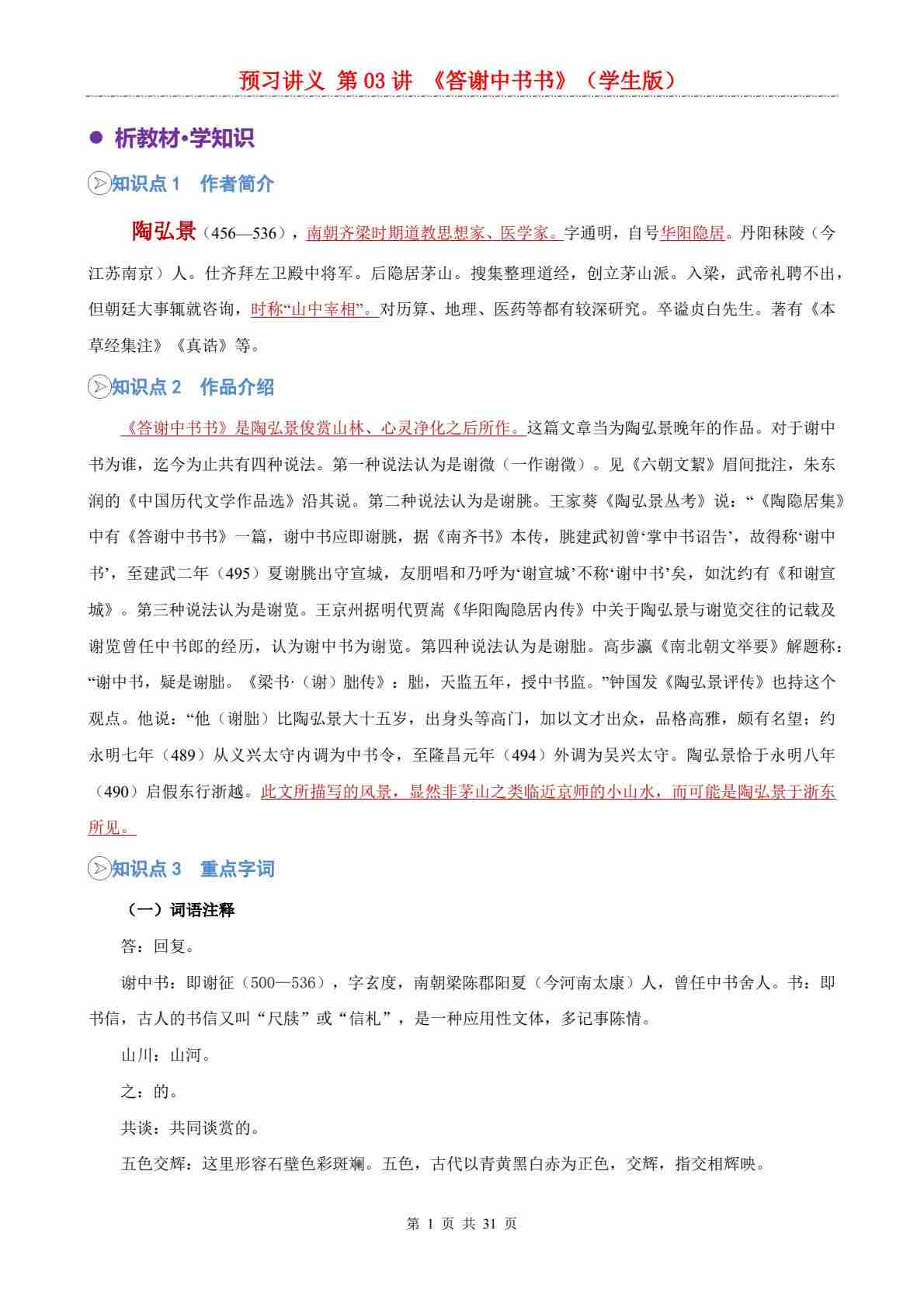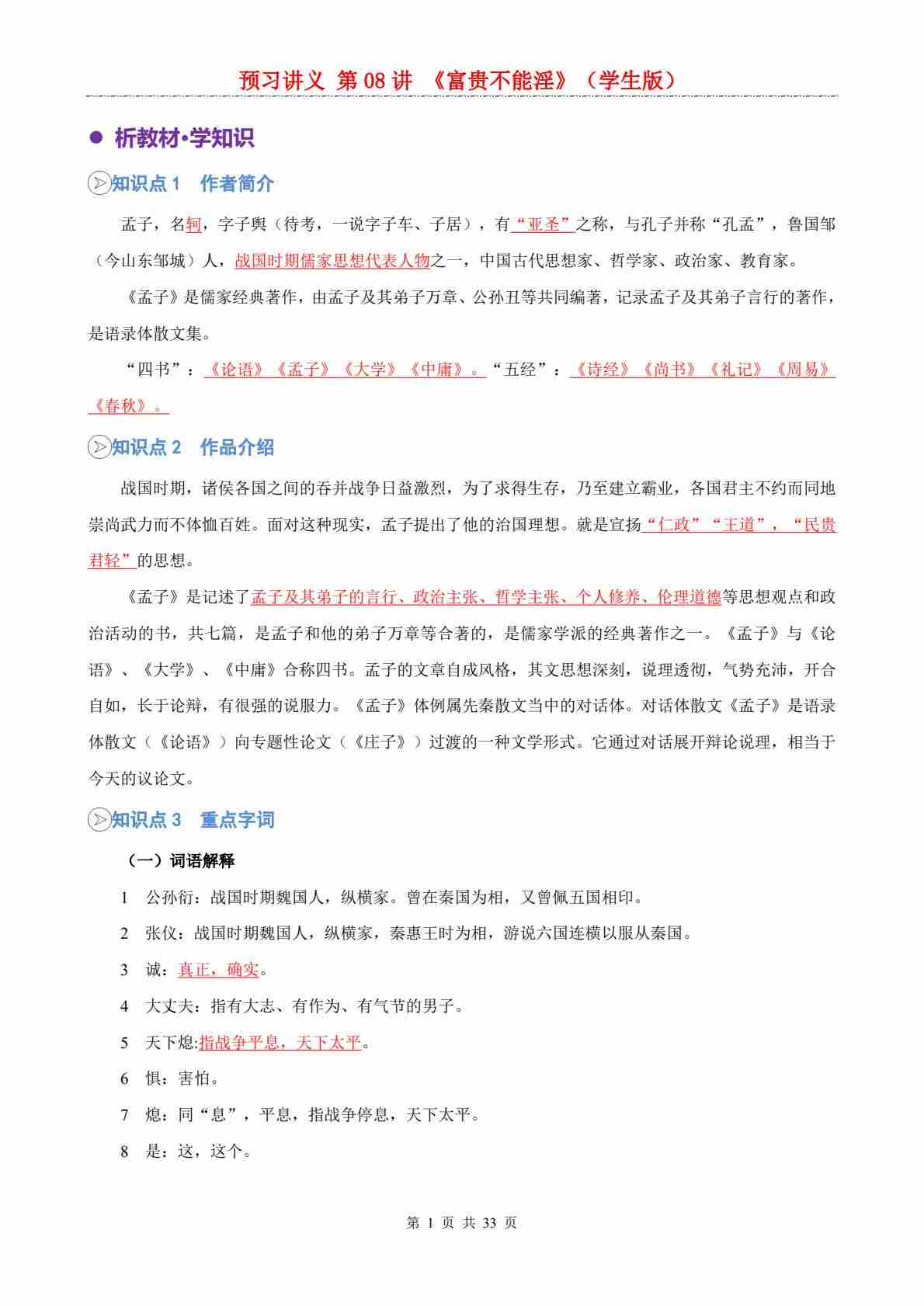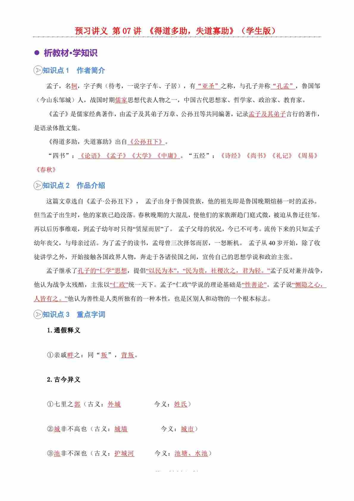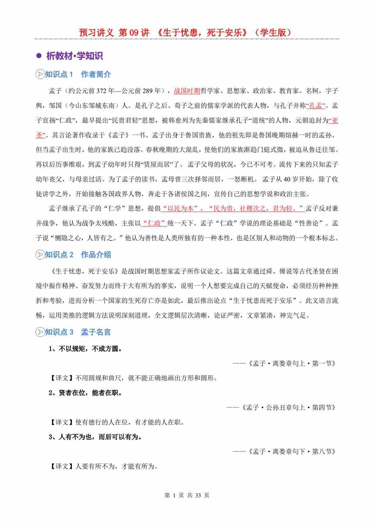【预习讲义】第09讲《生于忧患,死于安乐》