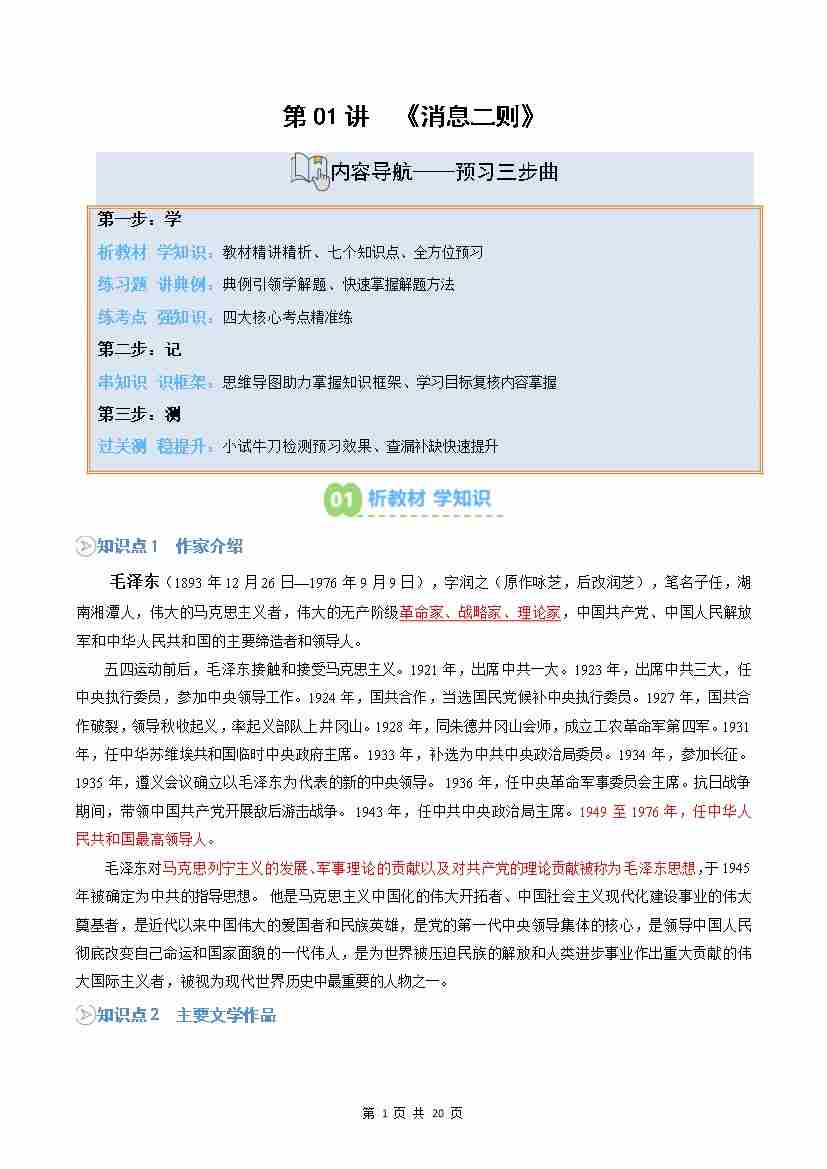 【预习】第01讲 《消息二则》(解析版)