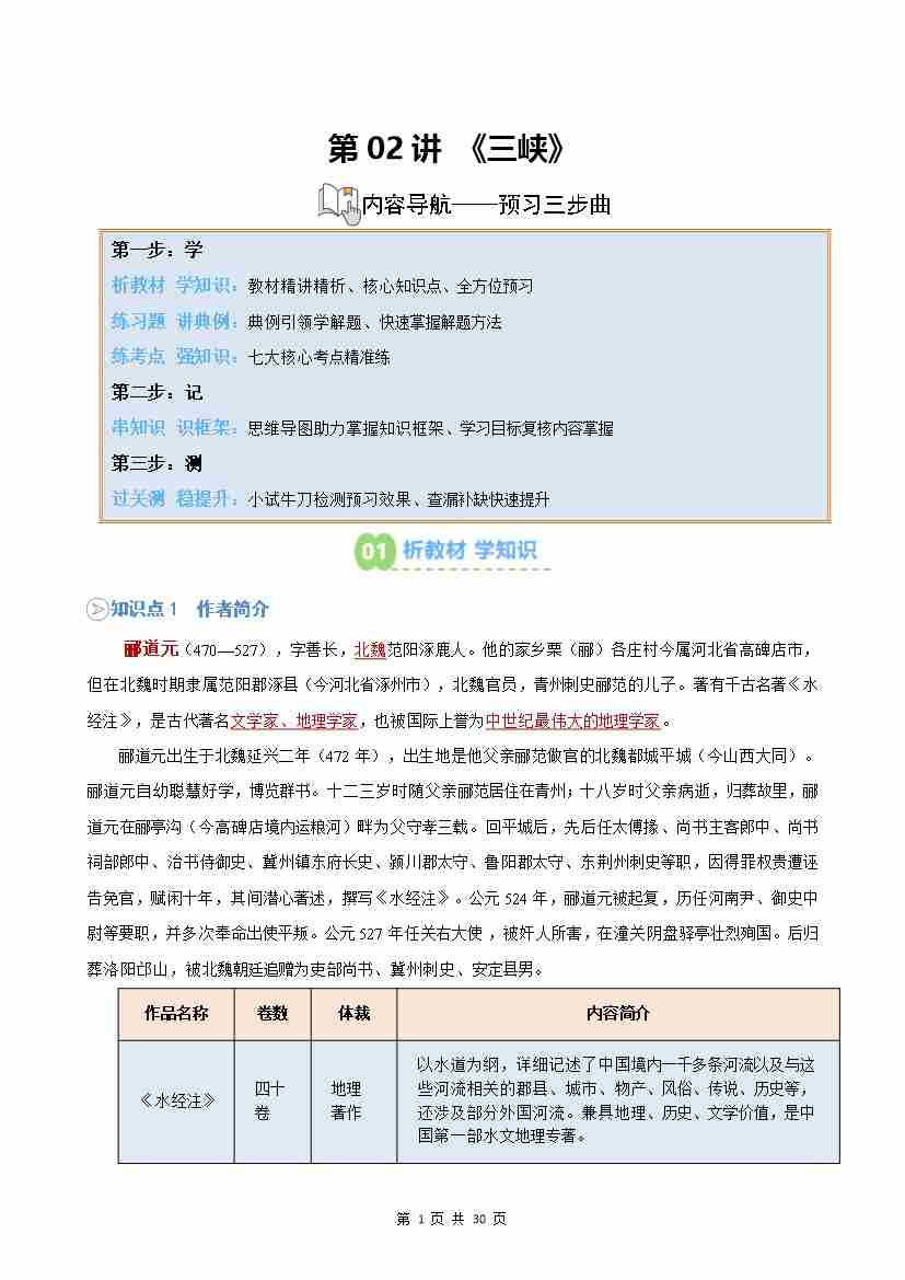 【预习】第02讲《三峡》(原卷版)