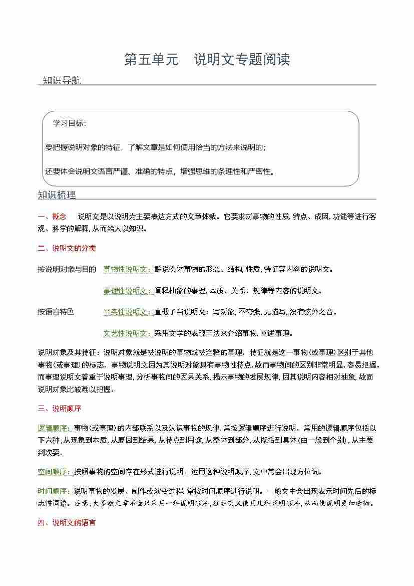 第五单元 说明文专题阅读(教师版)