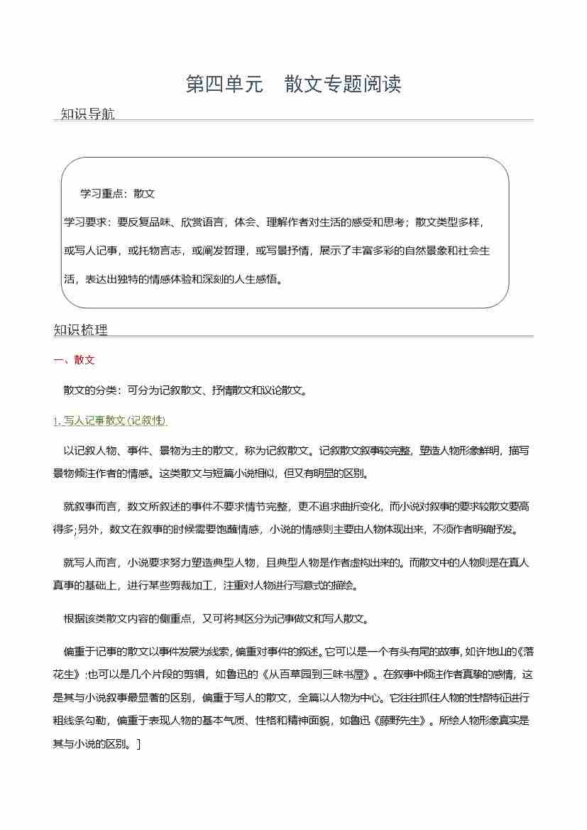 第四单元 散文专题阅读(教师版)