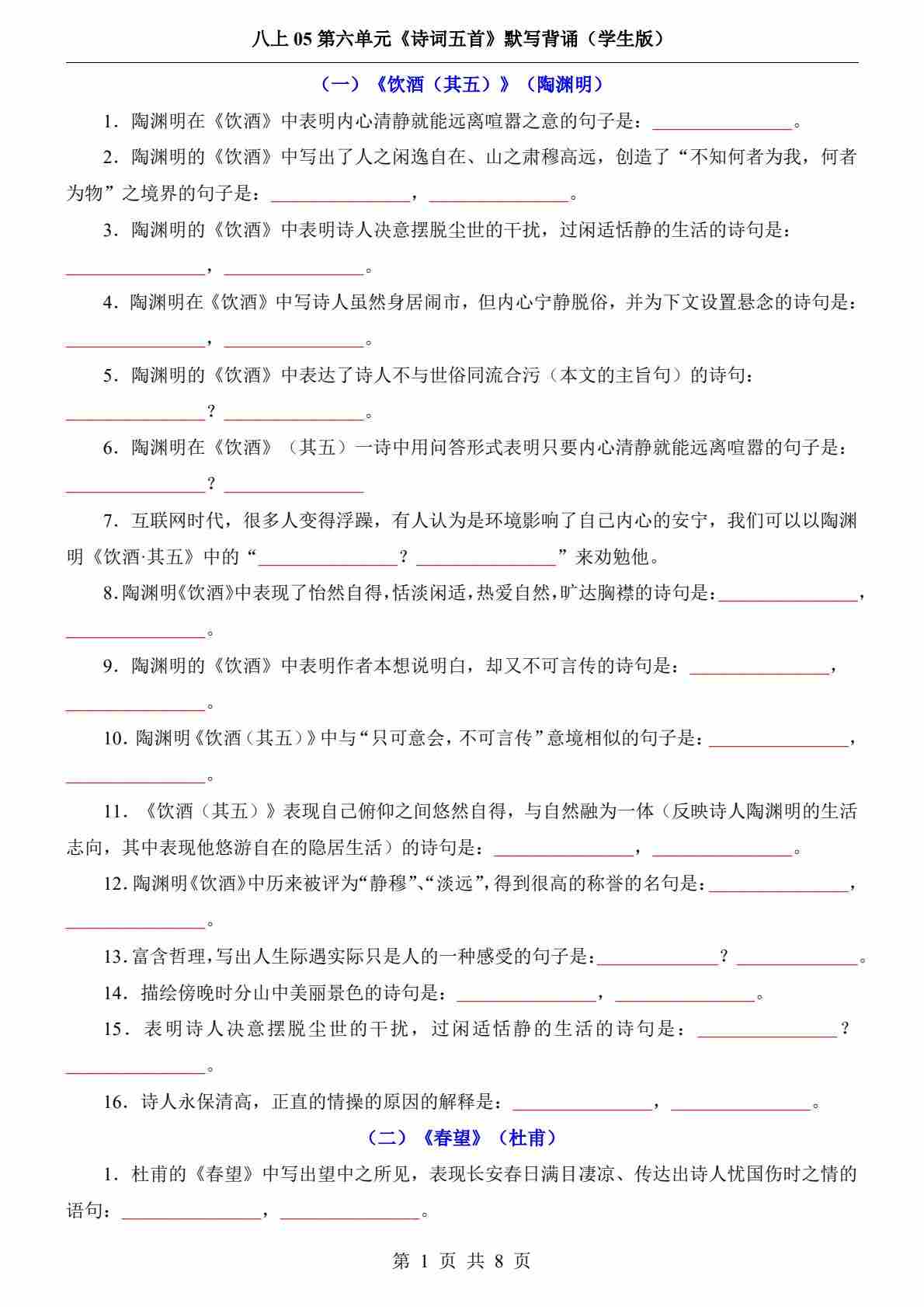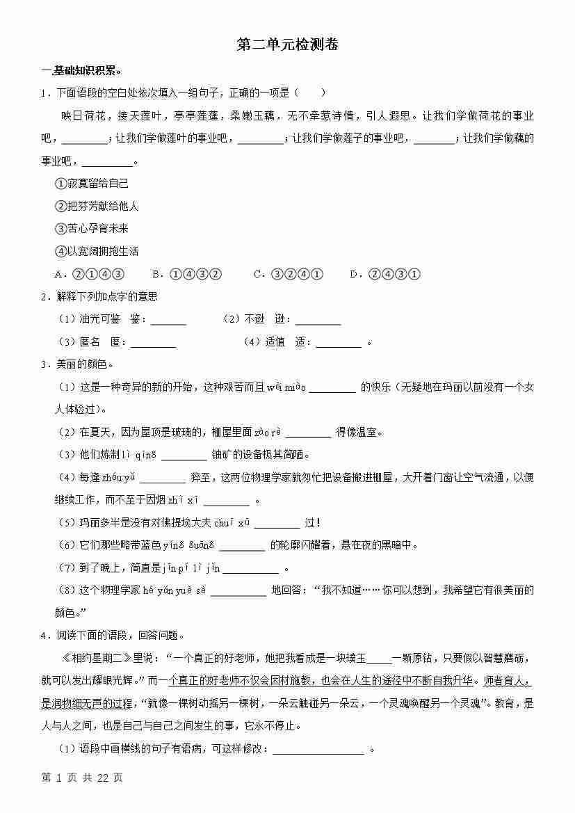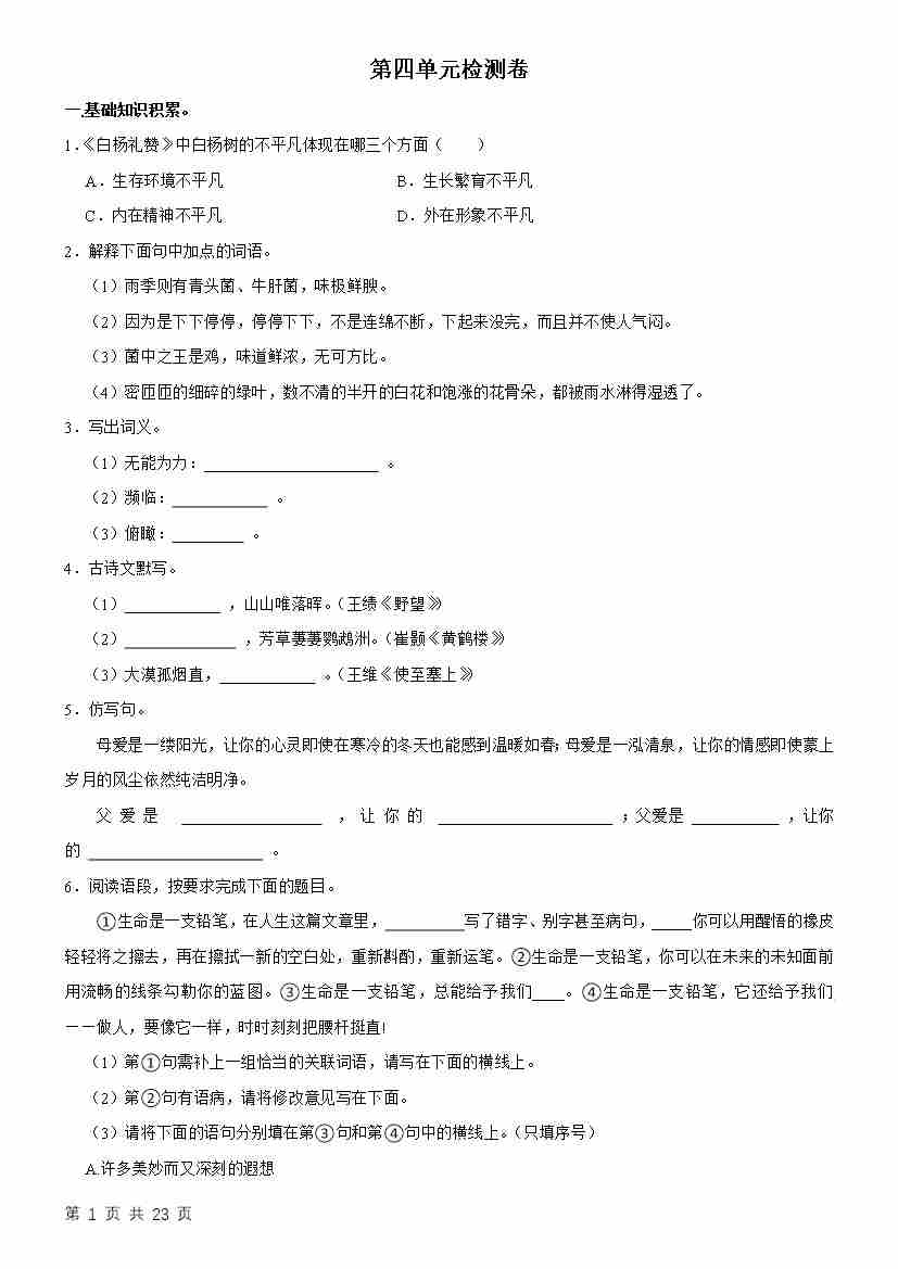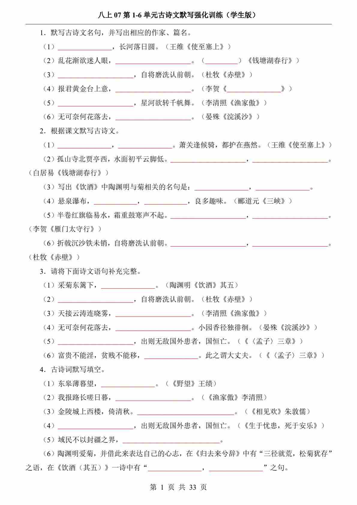 统编版2024八年级语文第一次月考卷·基础过关卷(考试版A4))
