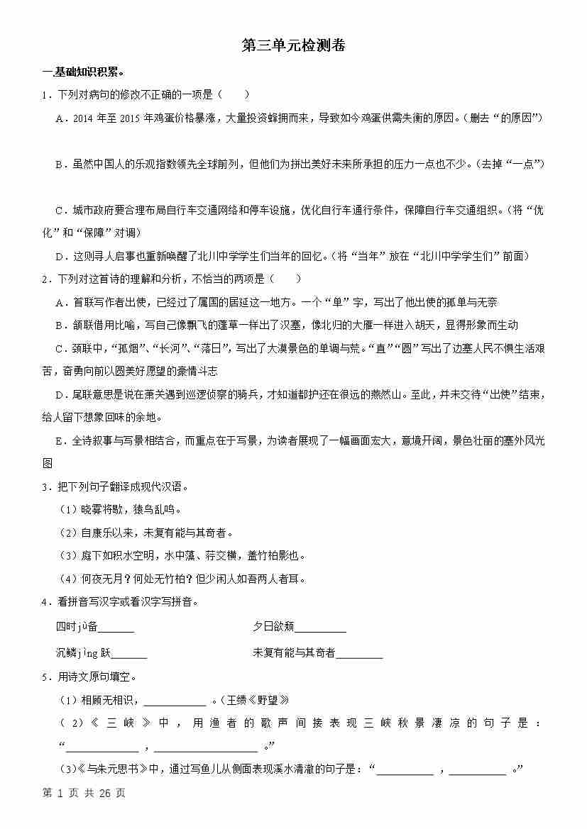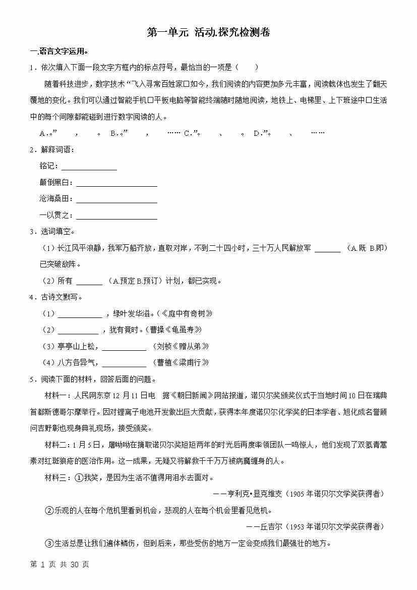 统编版2024八年级语文第一次月考卷·重难突破卷(全解全析)