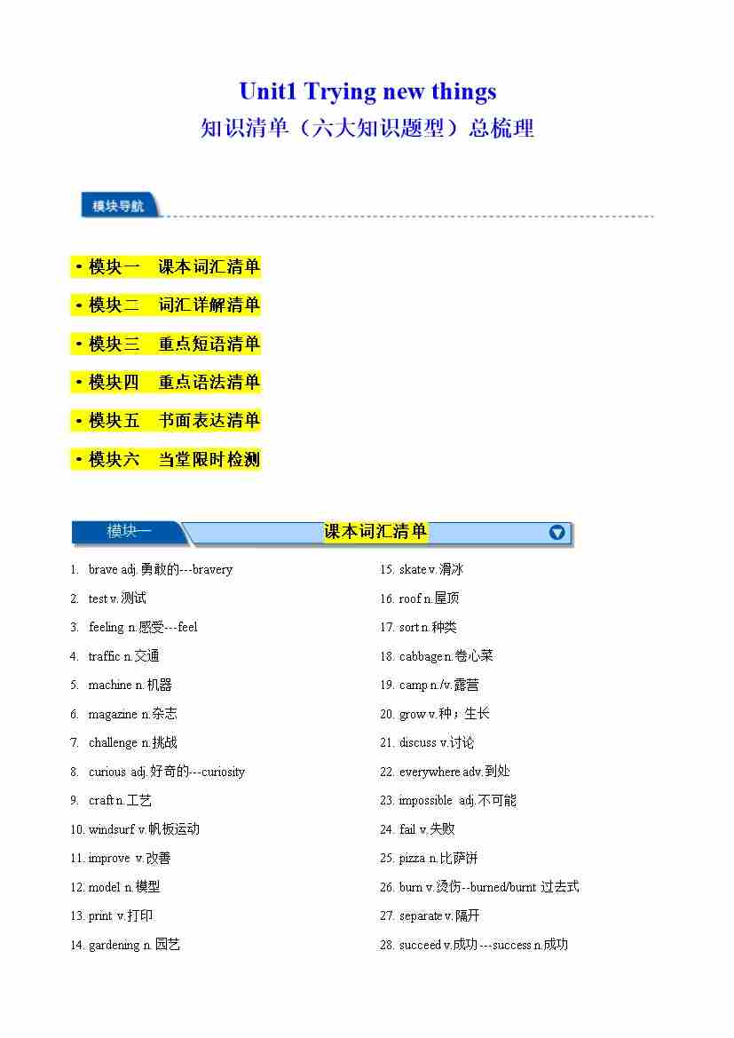 Unit 1 Trying new things 知识清单(六大知识题型)总梳理(解析版)
