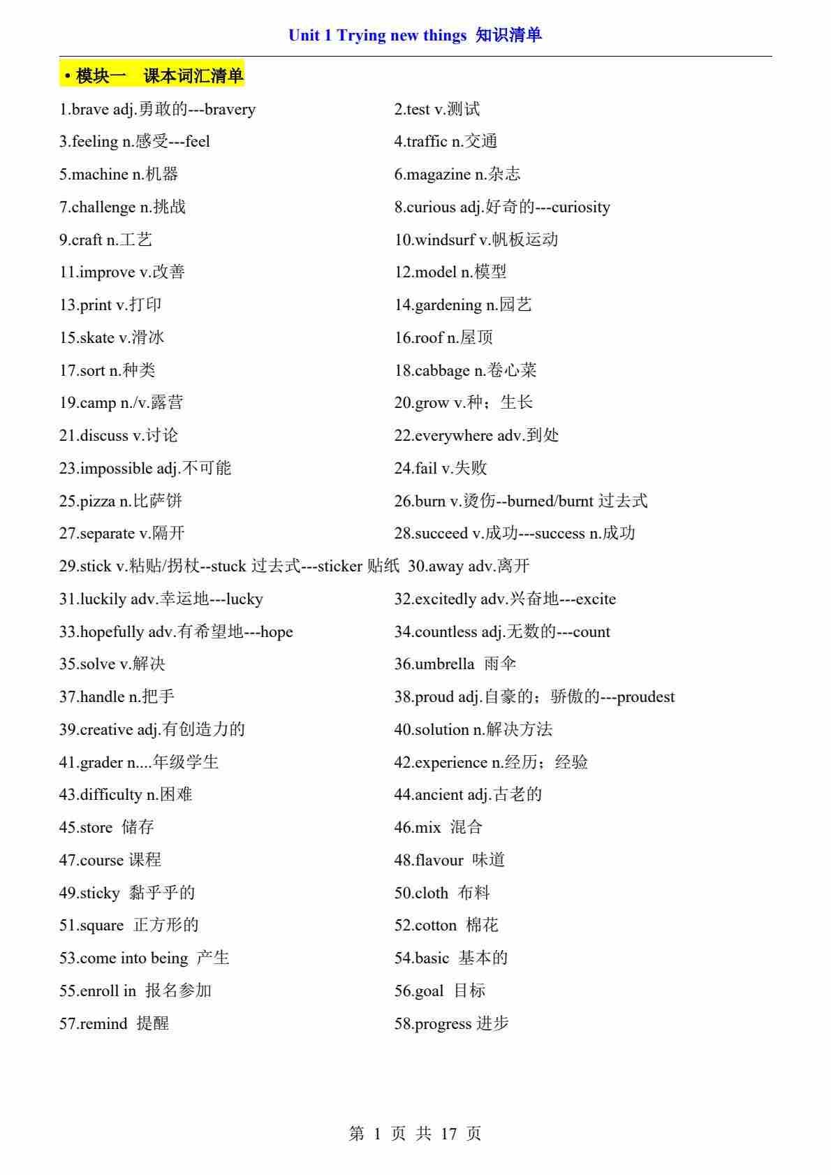 Unit 1(知识清单)--沪教54版