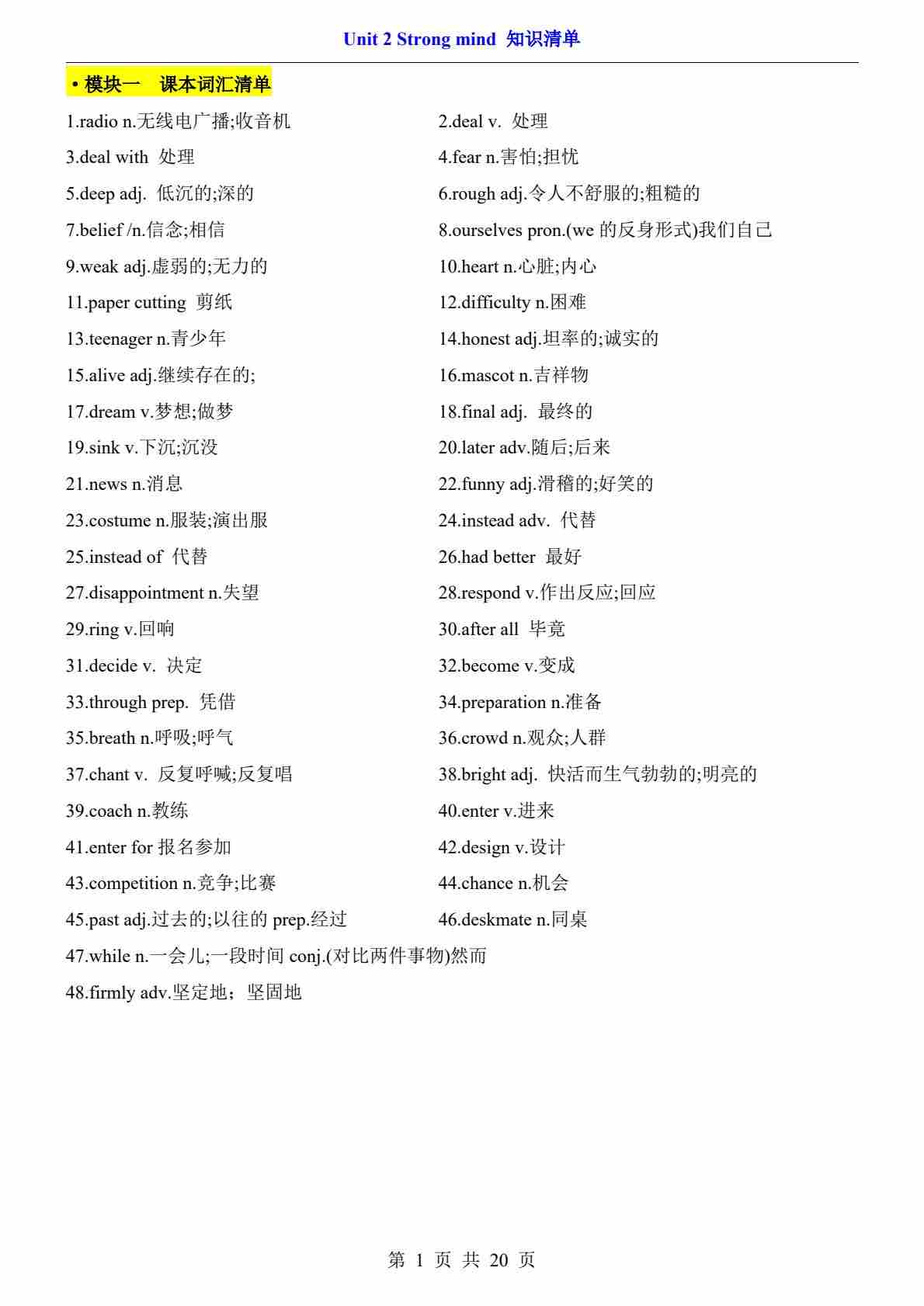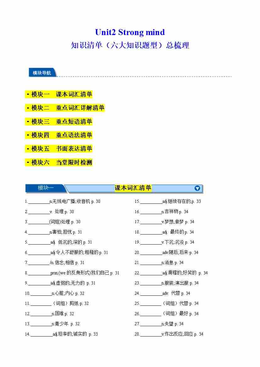 Unit 2 Strong mind 知识清单(六大知识题型)总梳理(原卷版)