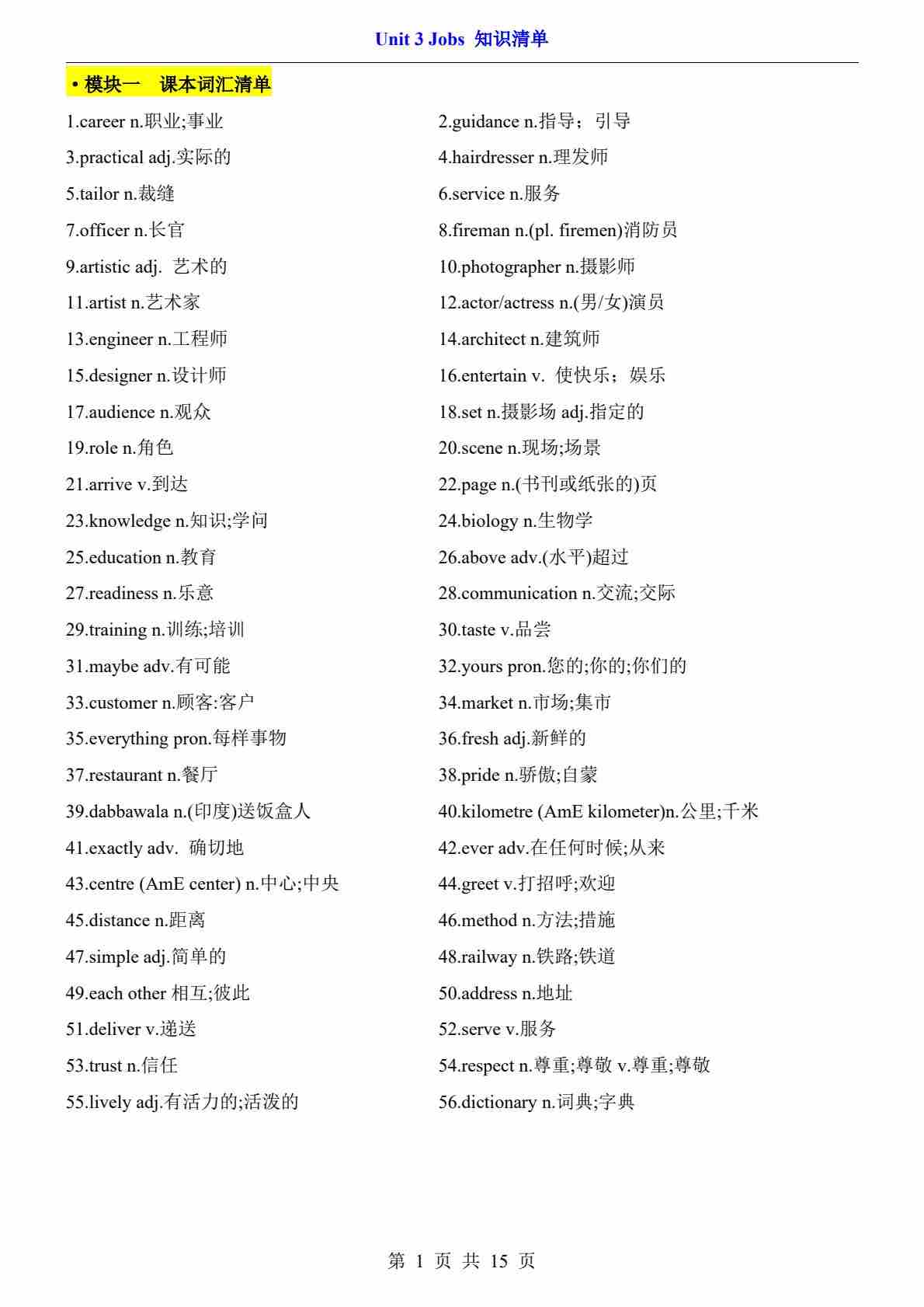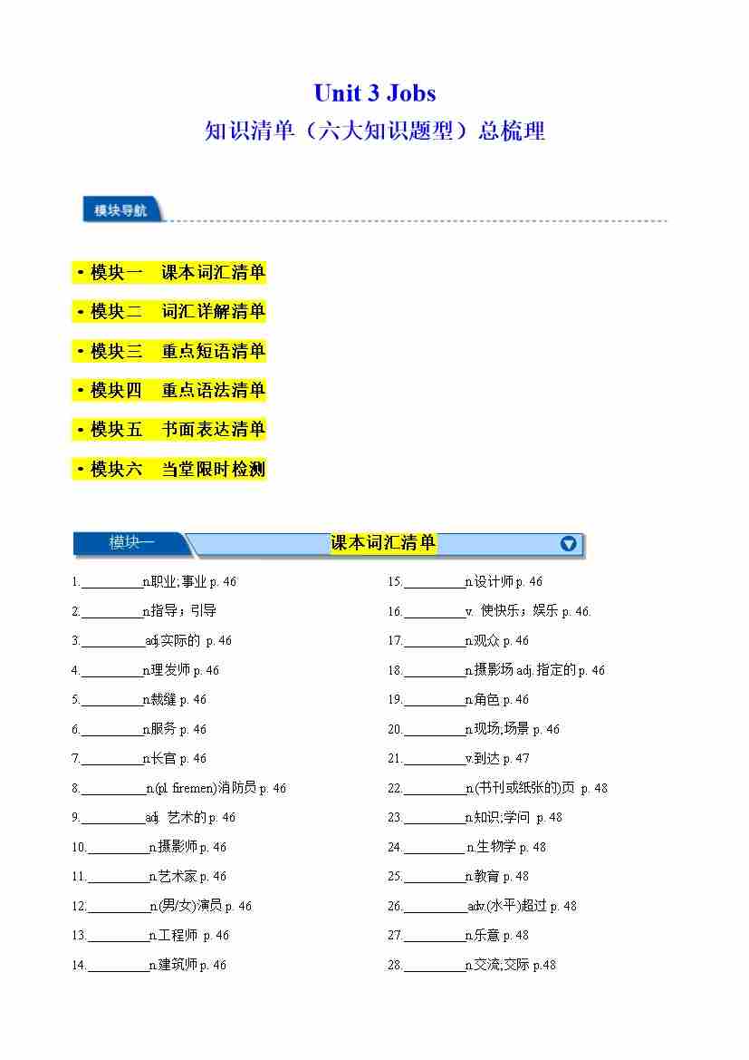 Unit 3 Jobs 知识清单(六大知识题型)总梳理(解析版)
