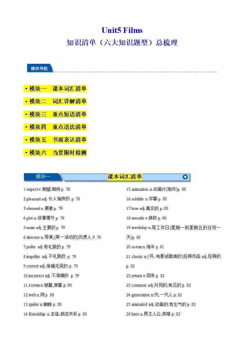 Unit 5 Films 知识清单(六大知识题型)总梳理(解析版)