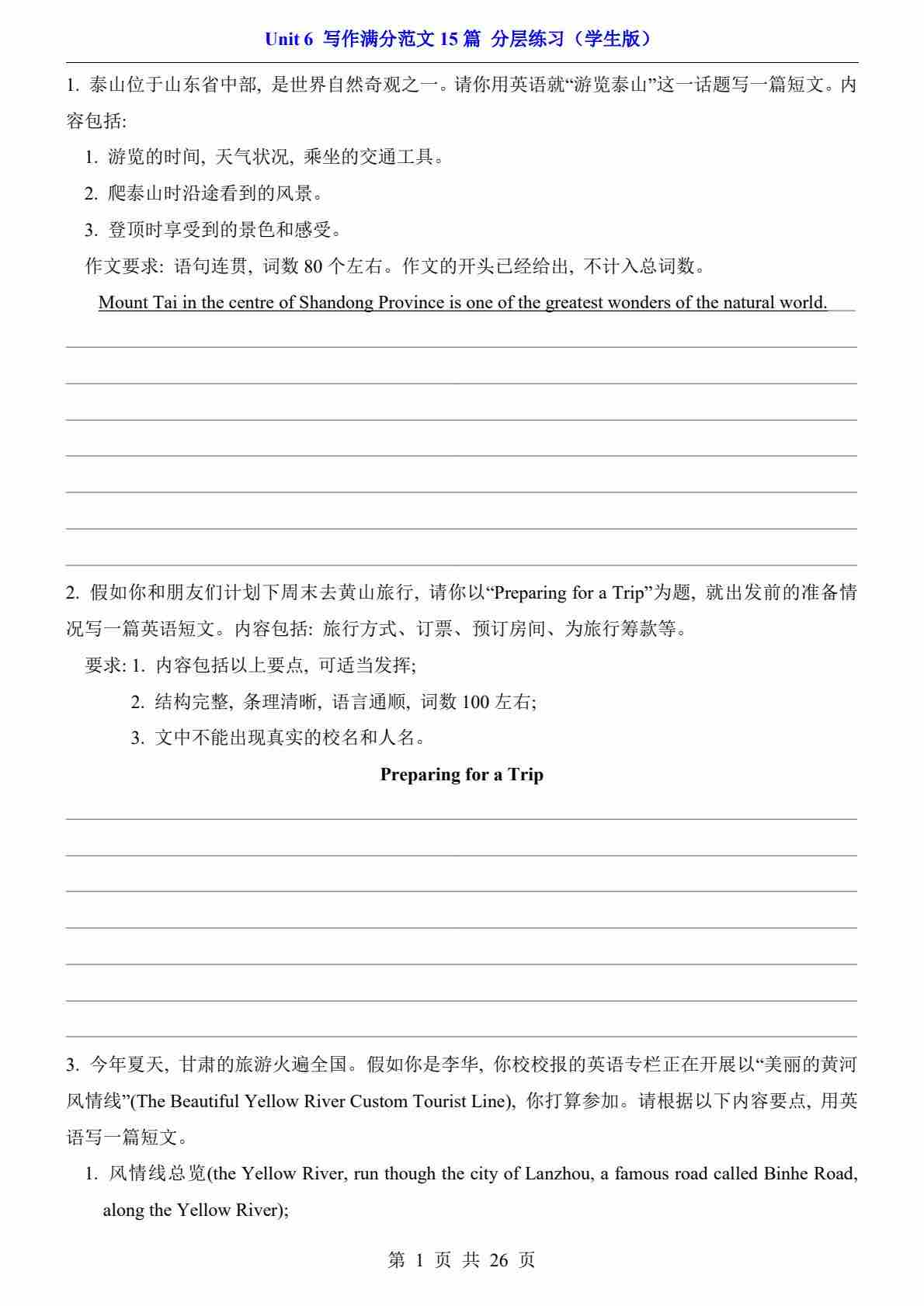 Unit 6 写作满分范文15篇(分层练习)