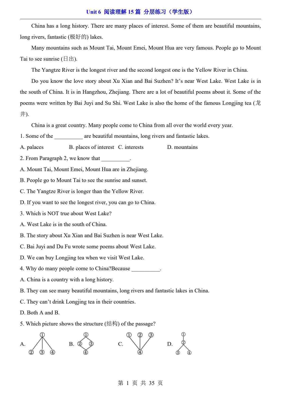 Unit 6 阅读理解15篇(分层练习)