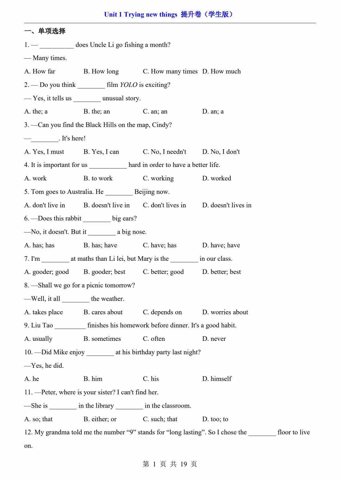 Unit 1(提升卷)