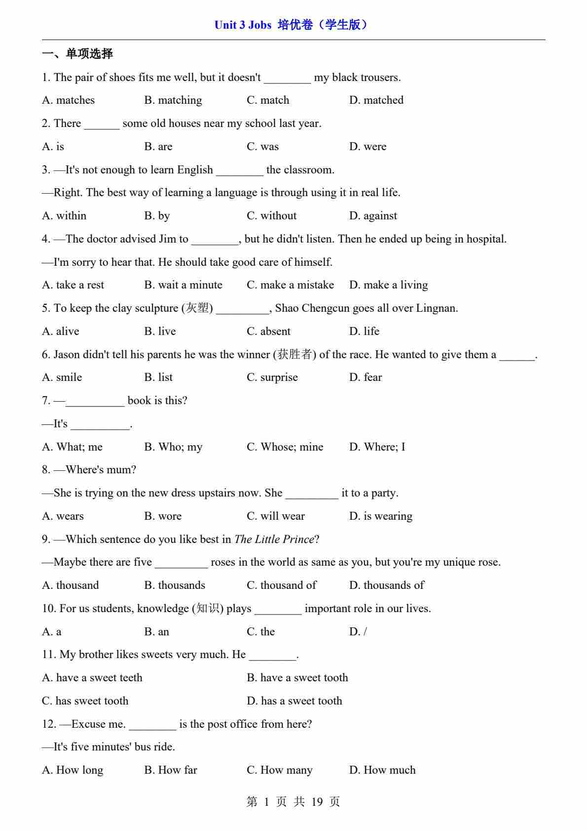 Unit 3(培优卷)
