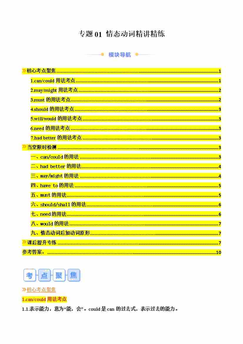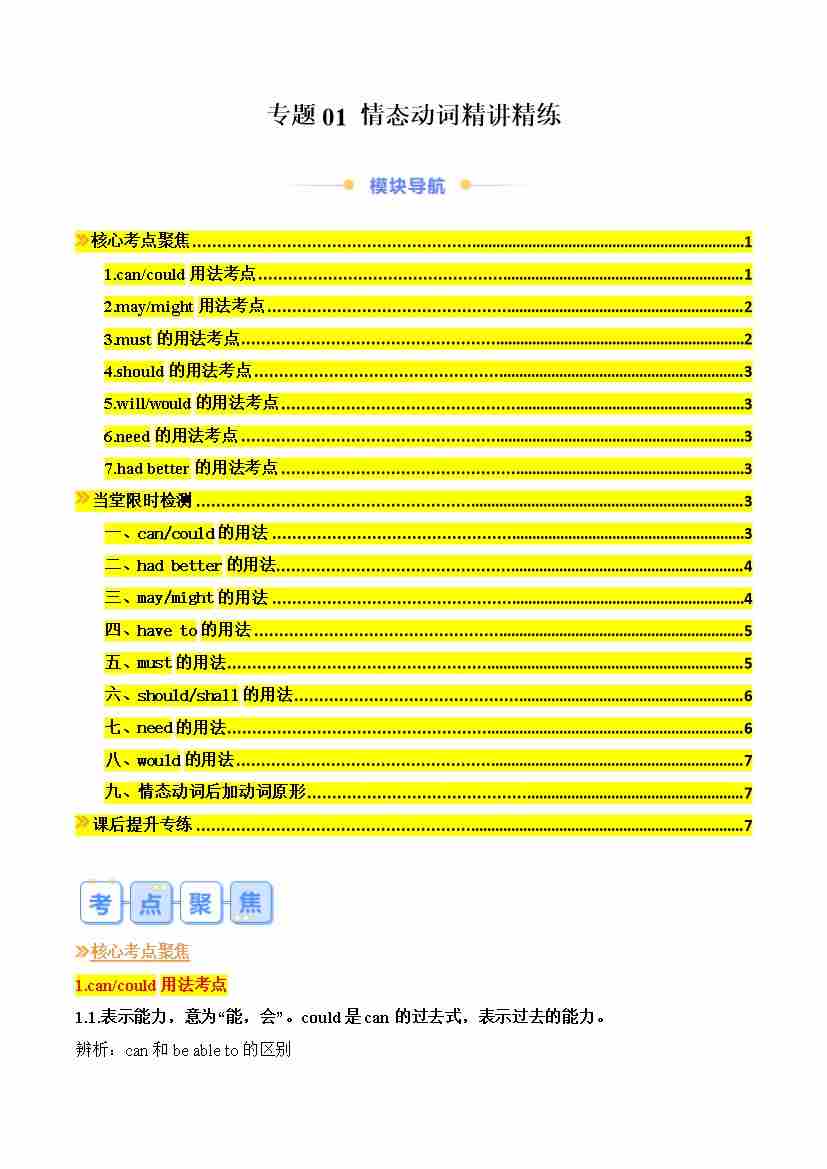 专题01 情态动词精讲精练(原卷版)