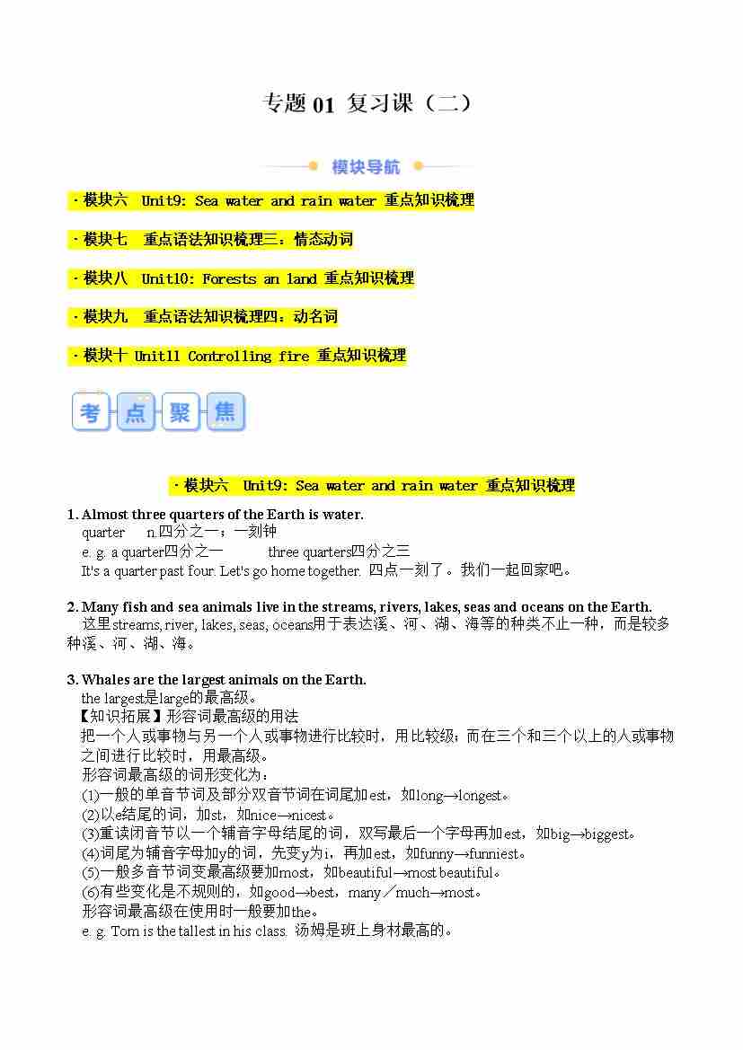 专题02 复习课(二)Units 9-11重难点梳理(原卷版)