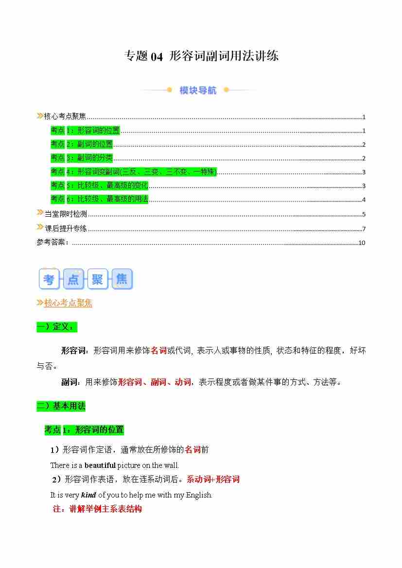 专题04 形容词副词用法讲练(解析版)