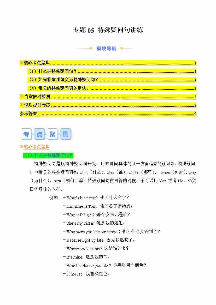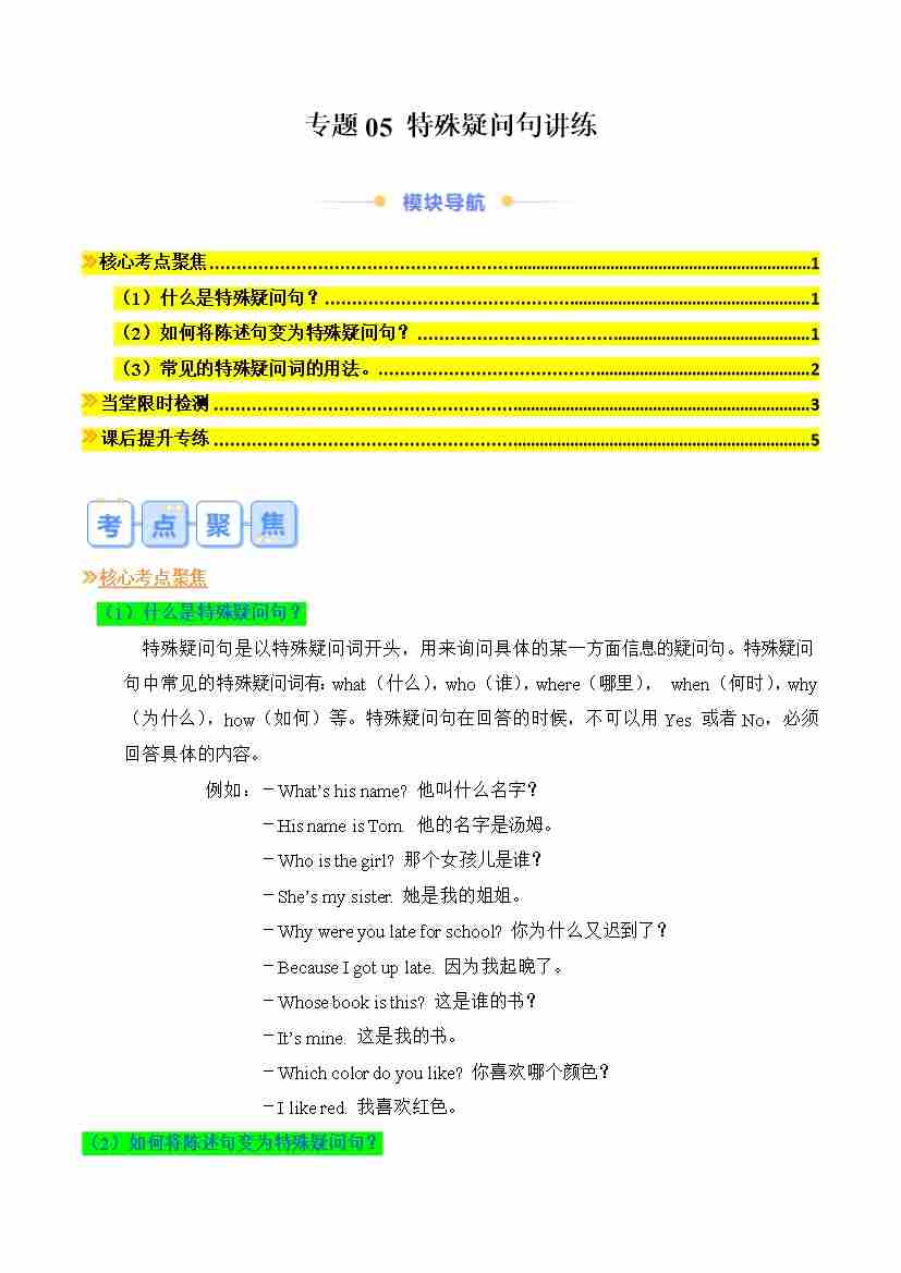 专题05 特殊疑问句讲练(原卷版)
