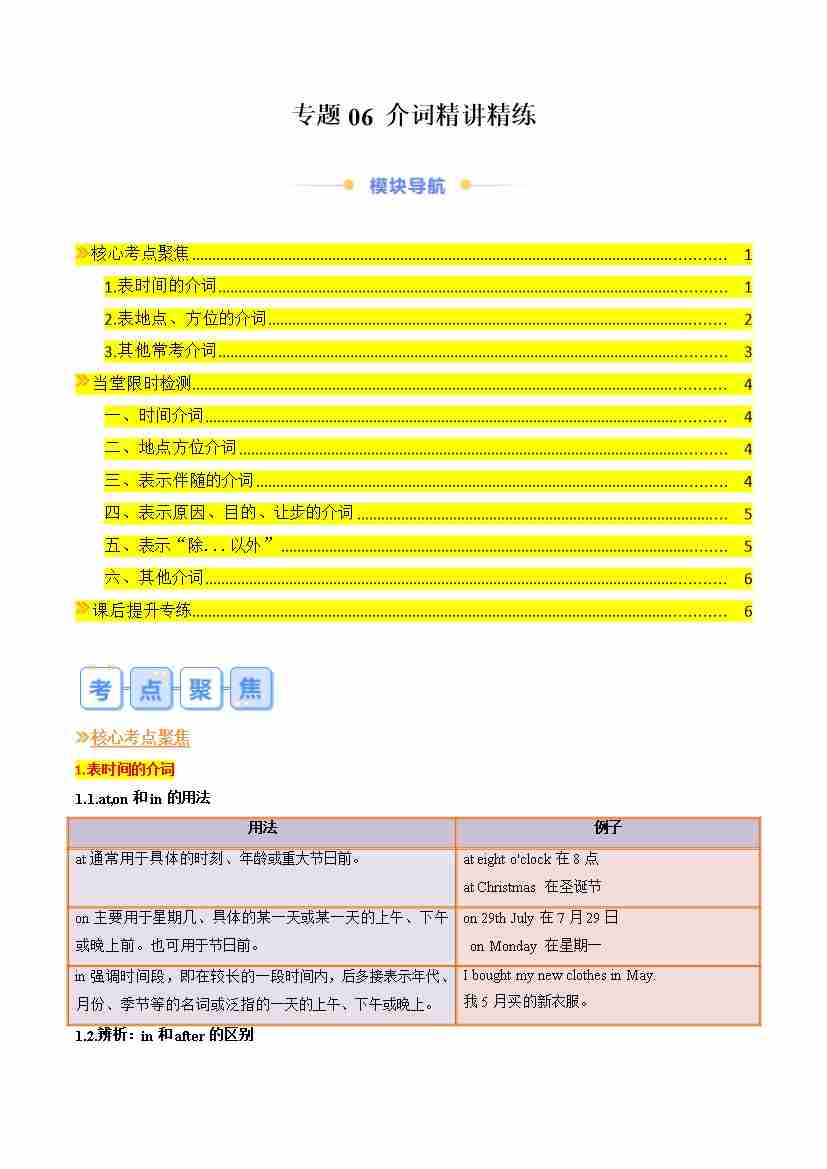专题06 介词精讲精练(原卷版)