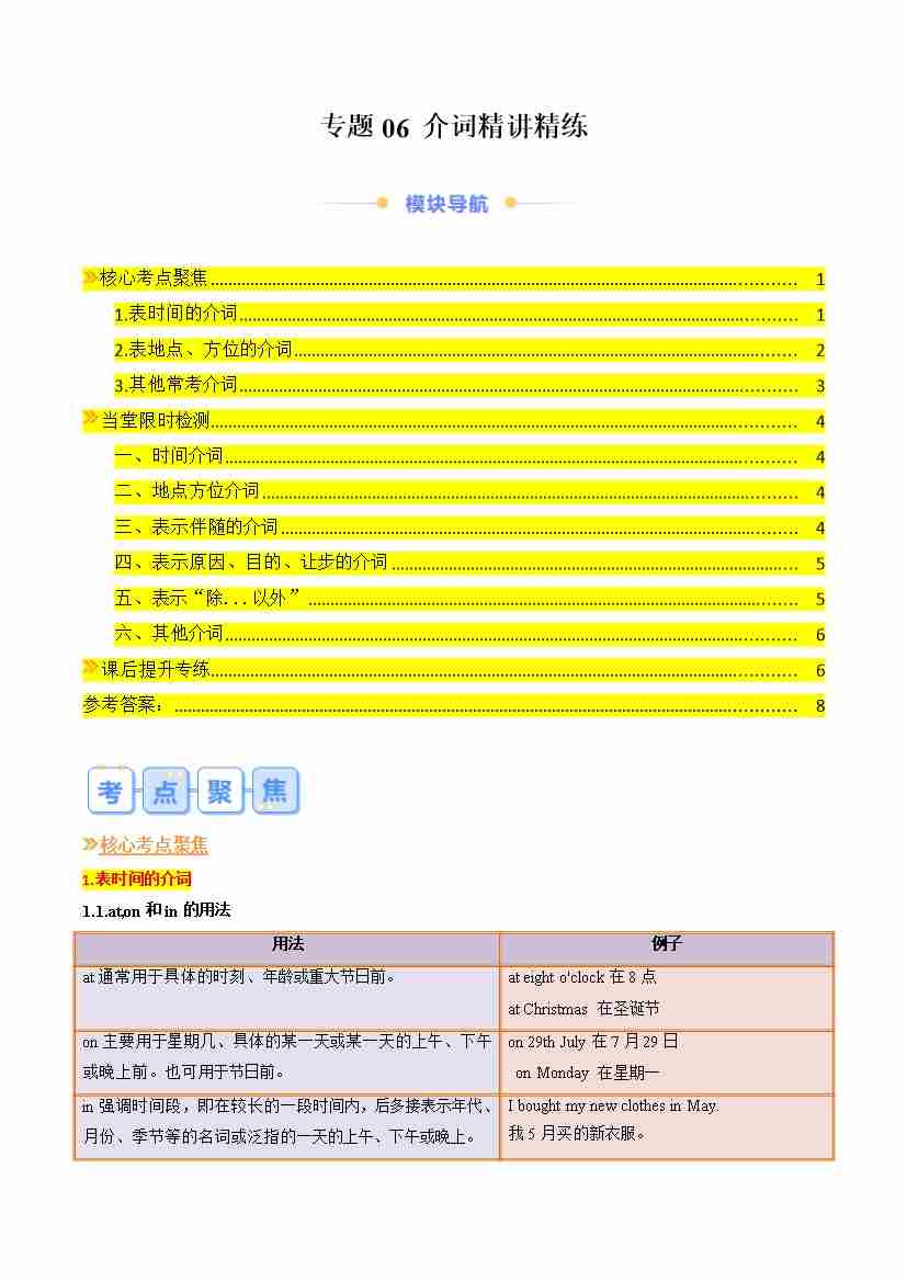 专题06 介词精讲精练(解析版)
