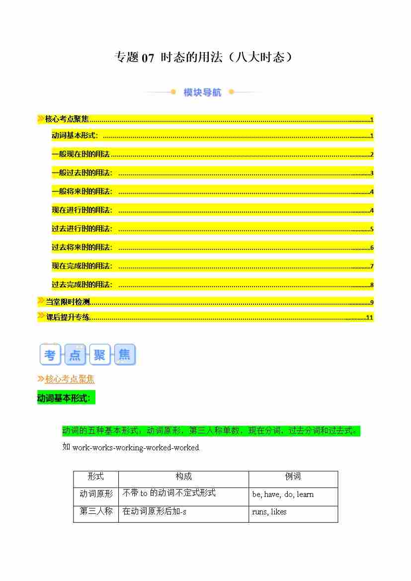 专题07 时态的用法(八大时态)(原卷版)