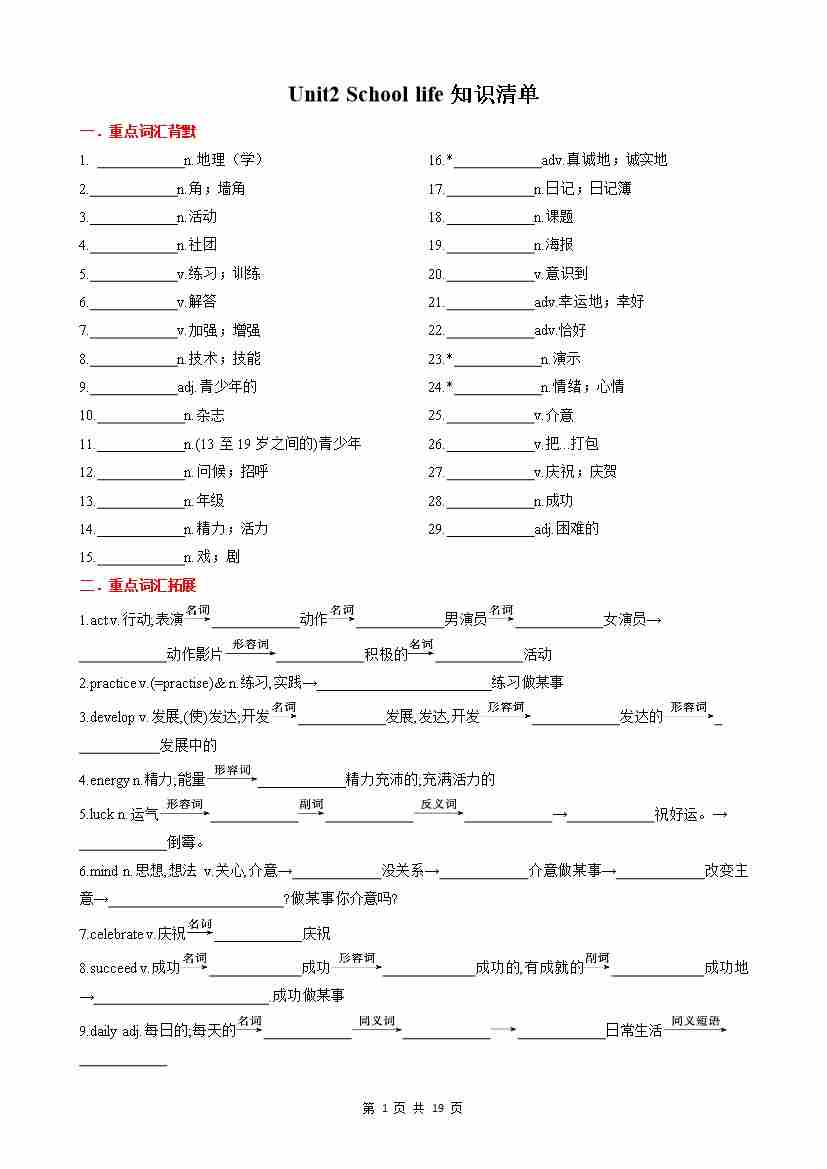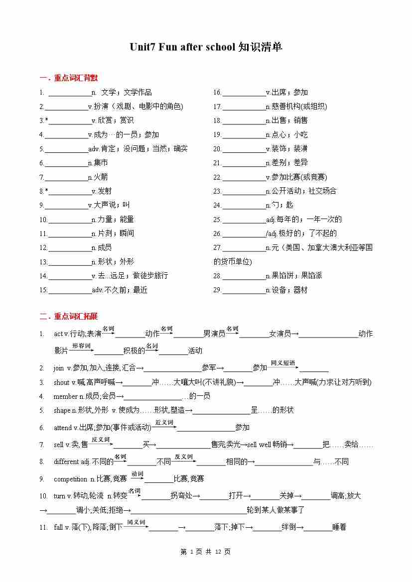 7.新牛津版Unit7 Fun after school知识清单(默写版)